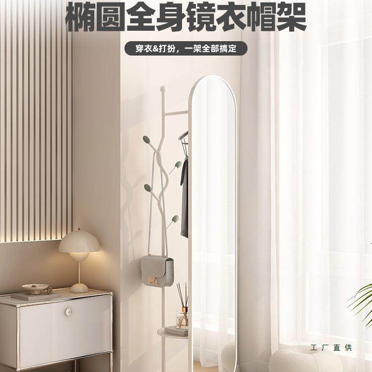 全身镜落地镜子奶油风旋转挂衣架试衣镜家用卧室穿衣镜衣帽架一体