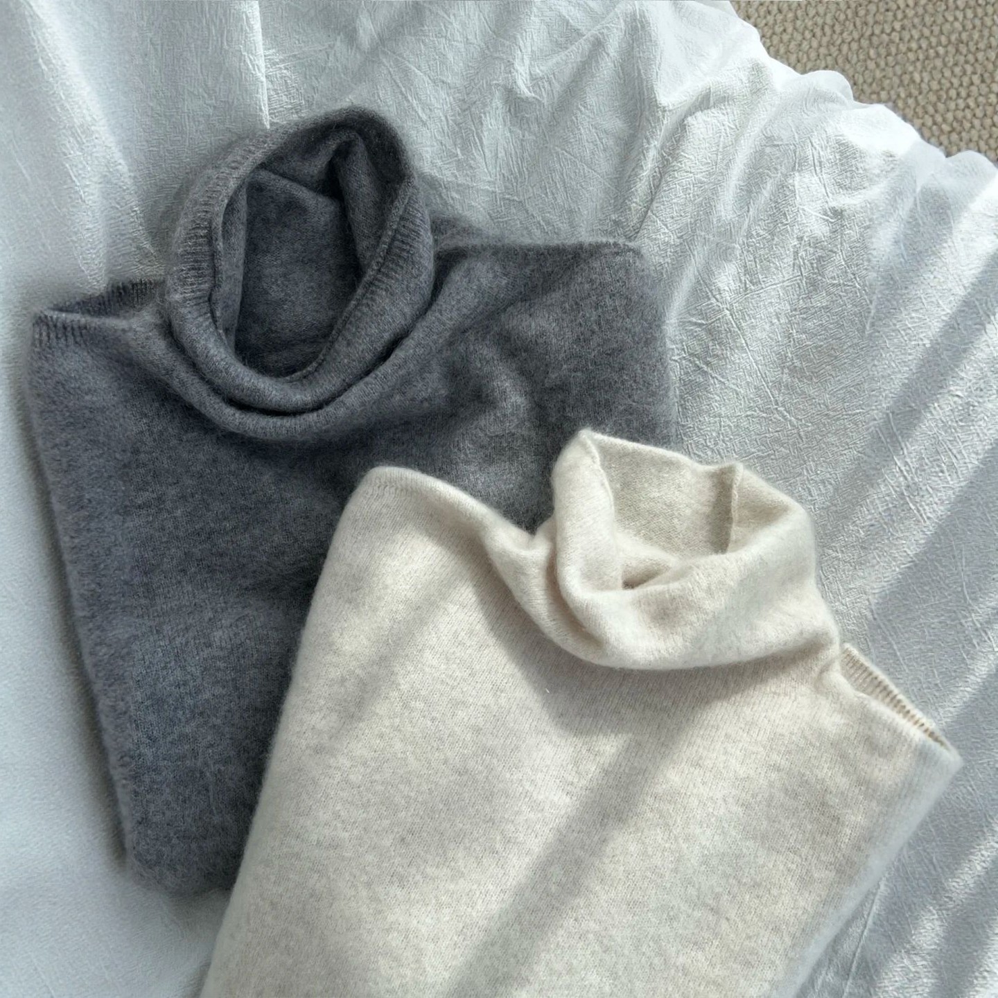100%羊绒衫 慵懒高级感内搭可外穿黑白色高领毛衣 女秋冬羊毛打底衫