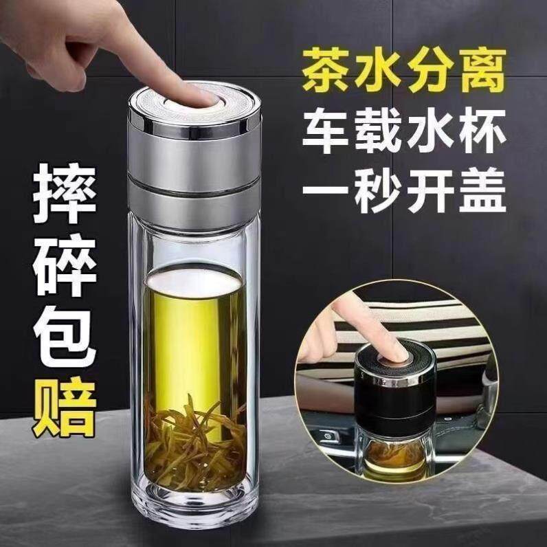 一键开盖玻璃杯保温杯防烫男士 高档泡茶杯速开茶水分离杯车载水杯