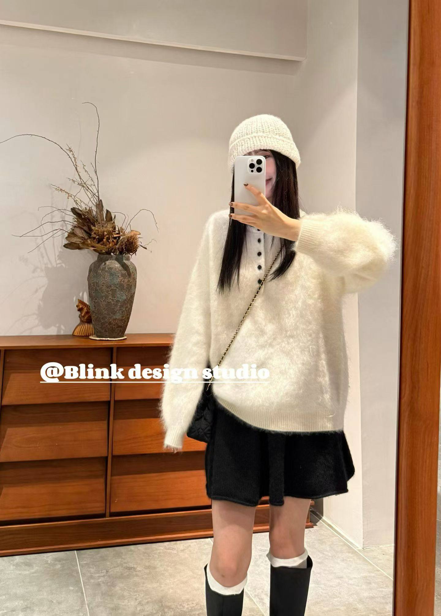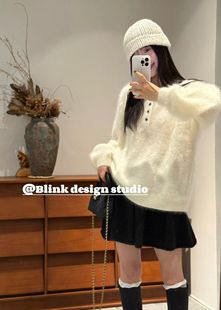 针织衫 洋气2025年秋冬毛衣长袖 宽松 女新款 软糯休闲花边圆领打底衫