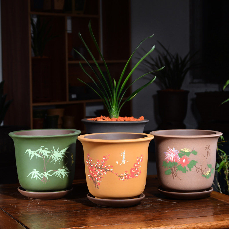君子兰花盆陶瓷绿萝吊兰创意梅兰竹菊绿植古典中国风宜兴紫砂花盆