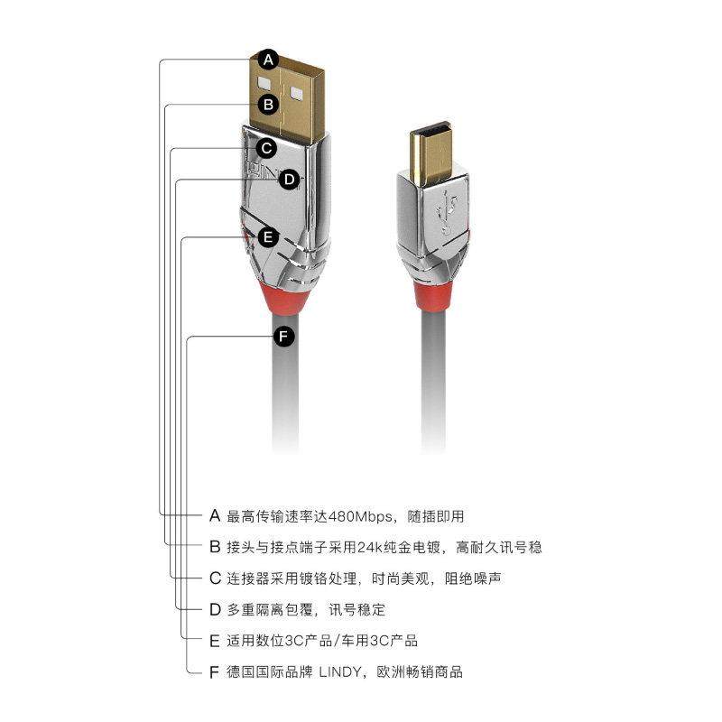 德国LINDY usb充电数据线T口MP4行车记录仪连接线 Cromo系列mini