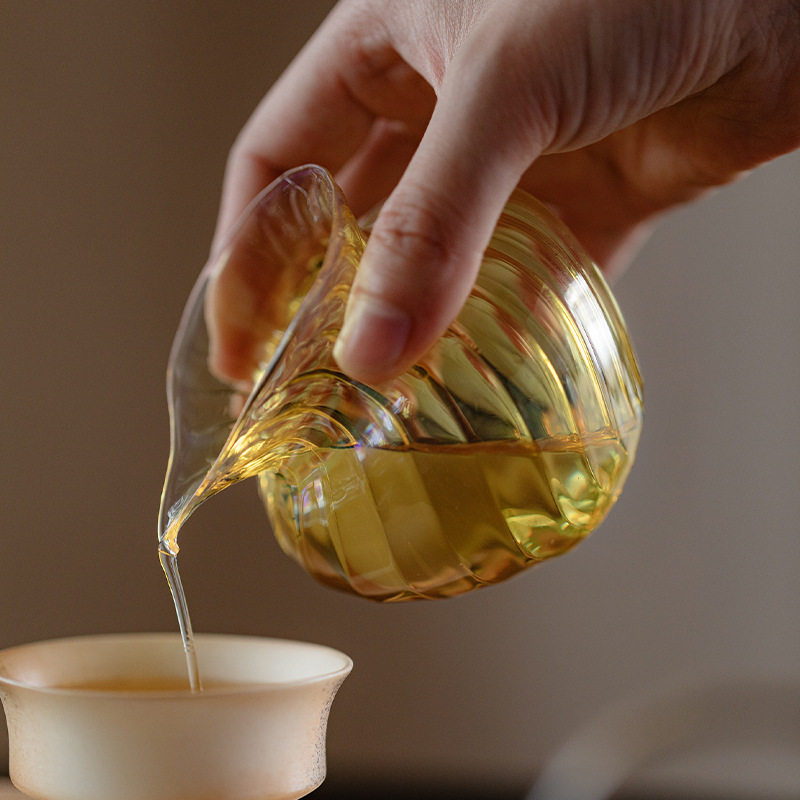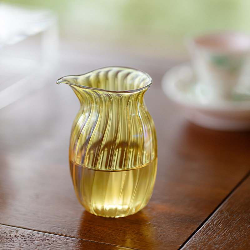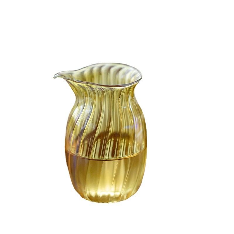 束刻耐热加厚公杯珊瑚黄高硼硅玻璃公道杯茶具配件透明茶海分茶器