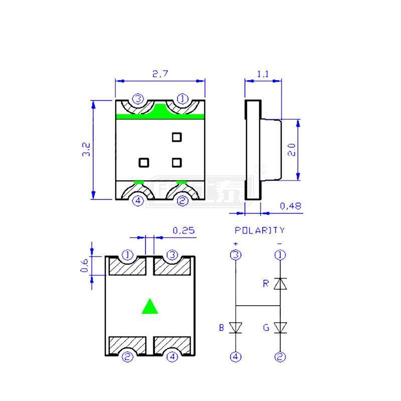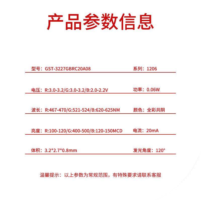 1206RGB全彩共阴1209七彩红蓝绿3227七彩LED贴片发光二极管三色灯