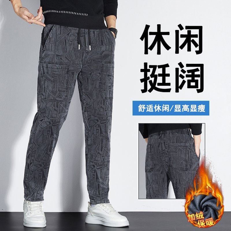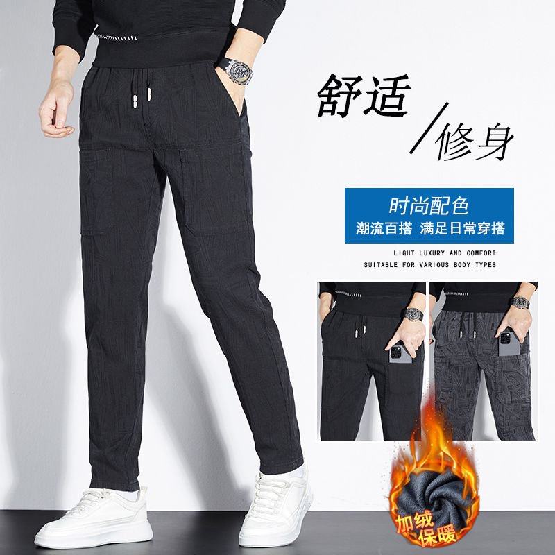 加绒多口袋提花品质休闲裤 新款 秋冬季 百搭潮流直筒 下单立减50