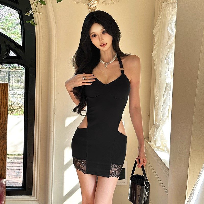 显瘦挂脖连衣裙气质百搭垂感辣妹长裙 纯欲风褶皱修身 SylCue 法式