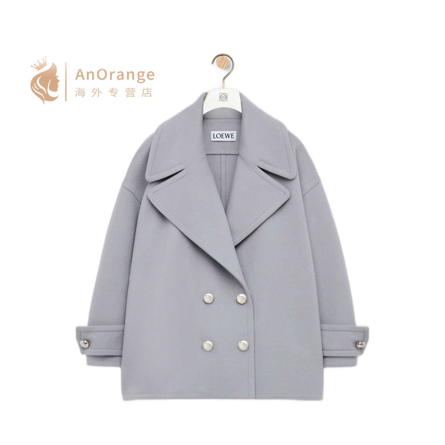 罗意威女装 短款 2026新款 翻领长袖 双排扣大衣 双面羊毛经典 Loewe
