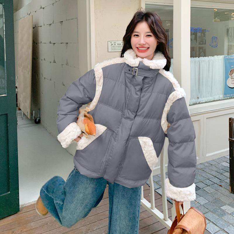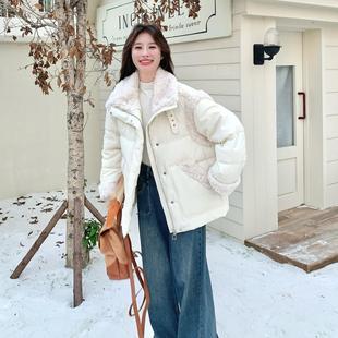 好看 冬季 韩羊羔绒拼接厚绒外套 262鸭羽绒羽绒服系女款 超白D01