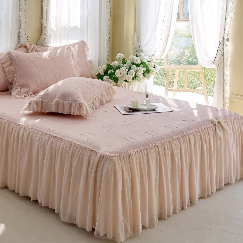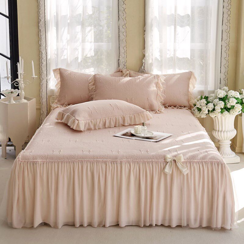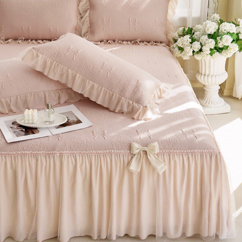 夏季 空调软席子可机洗床品 凉感冰丝凉席三件套公主风蕾丝边床裙款