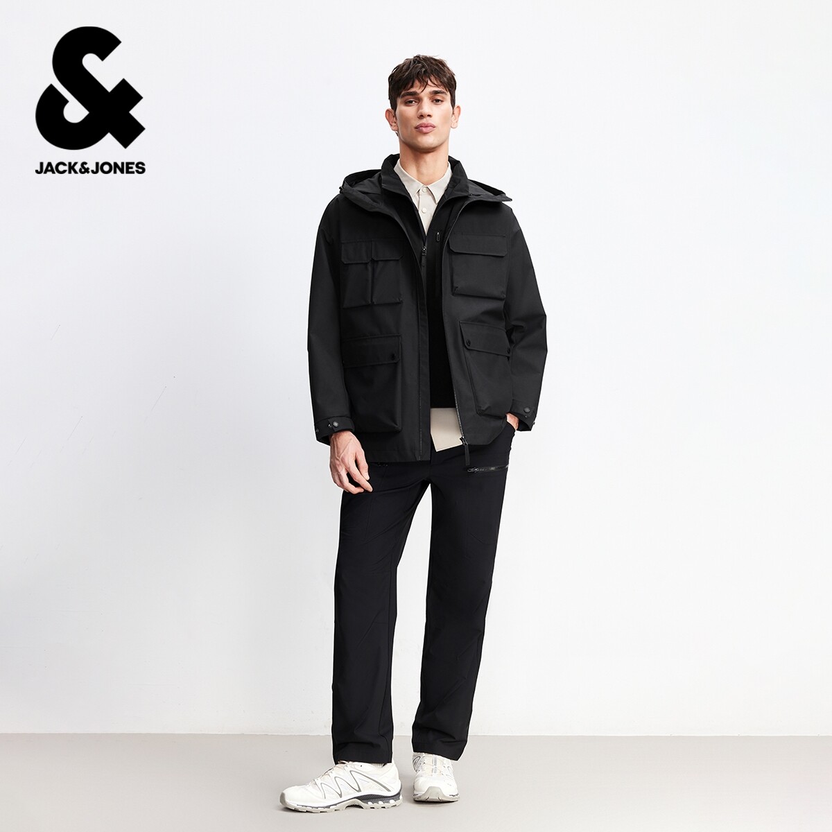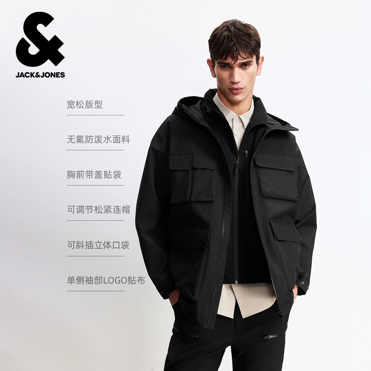 工装 外套26年春季 杰克琼斯男士 户外连帽上衣男装 3M防泼水夹克