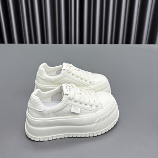 圆头松糕厚底增高显瘦牛皮休闲运动板鞋 新款 女2026春季 真皮小白鞋