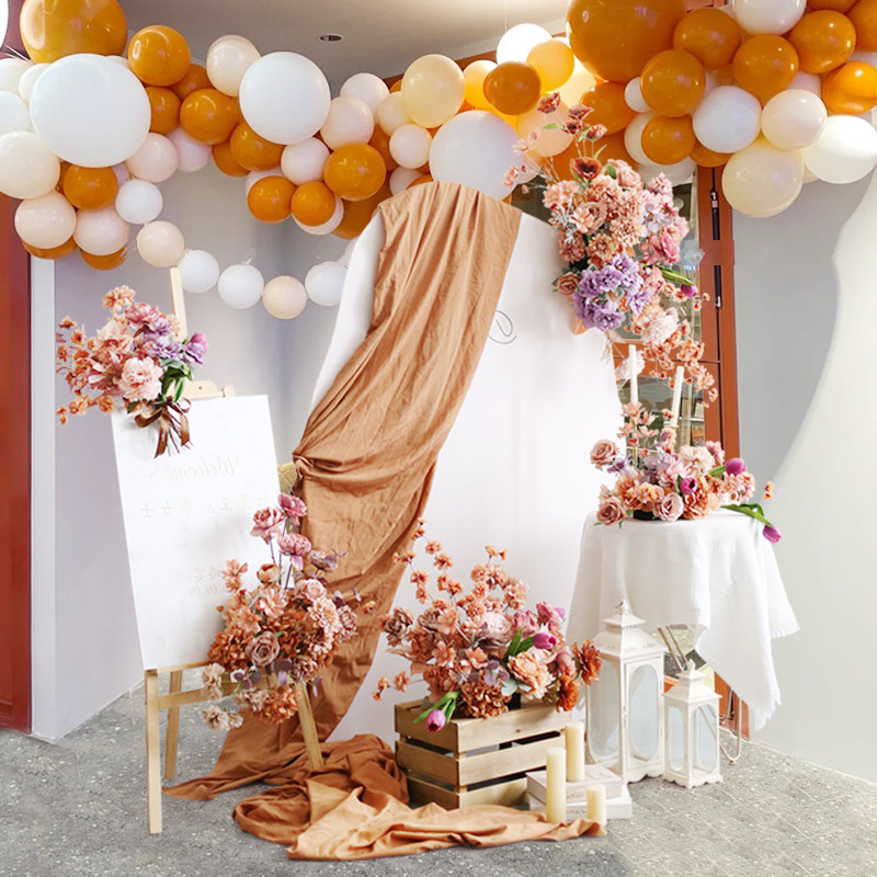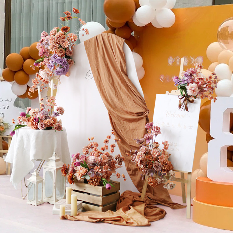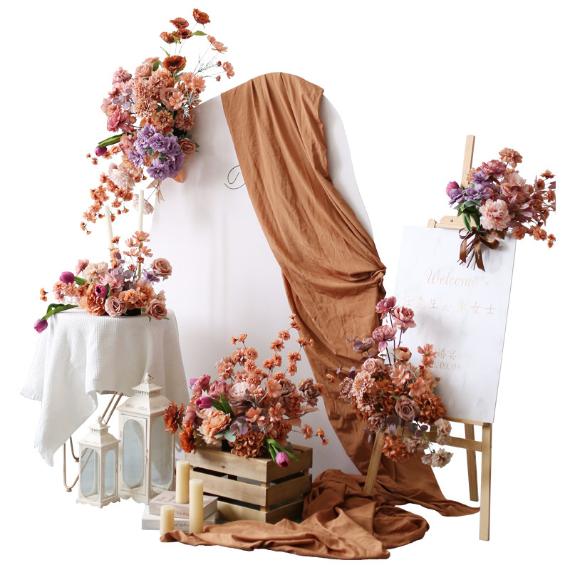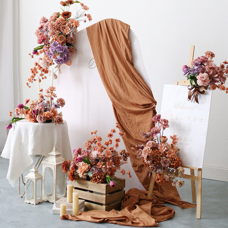 高级咖色活动布置花艺套装 仿真假花迎宾水牌花桌花壁挂小花堆花束