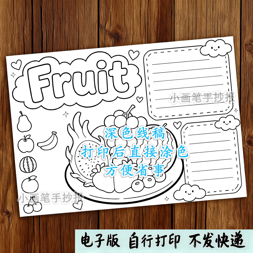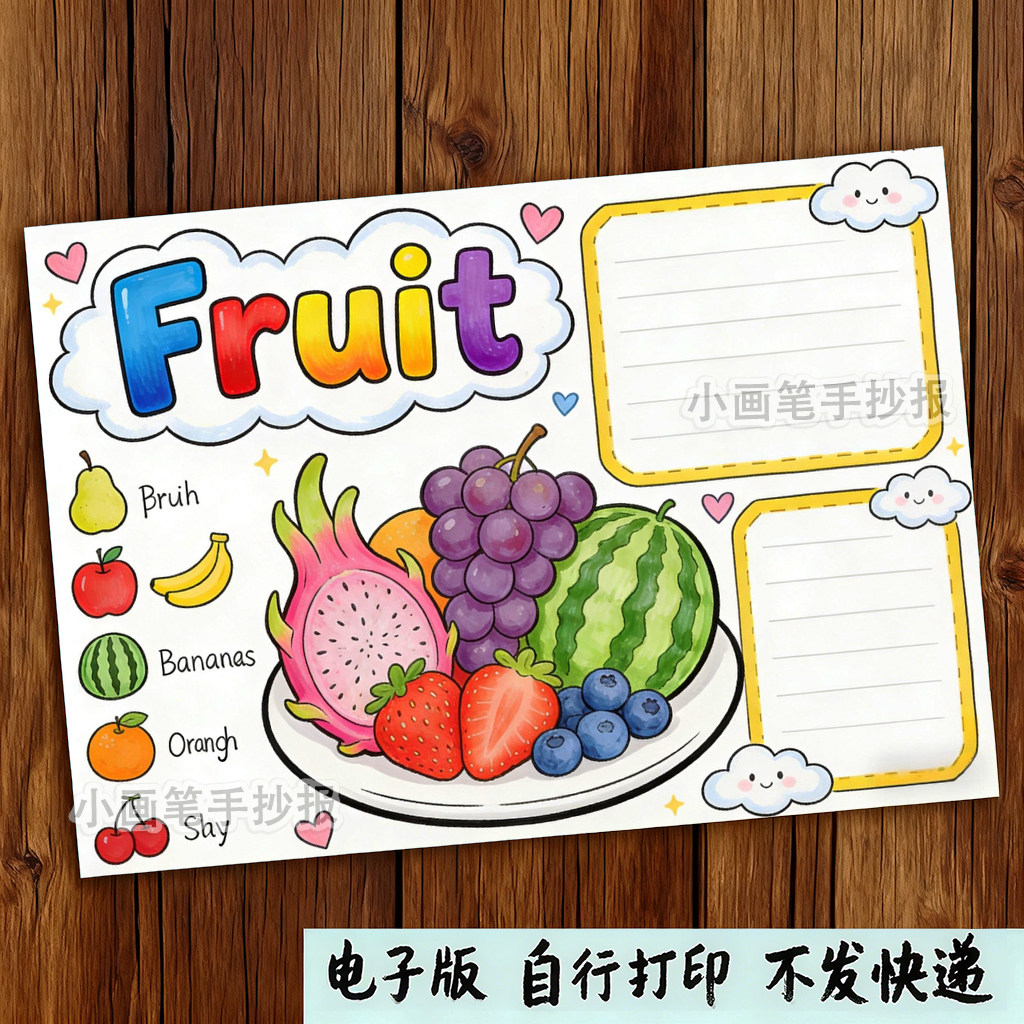 Fruit_英语水果儿童画模板小学生英文水果单词认识手抄报t52