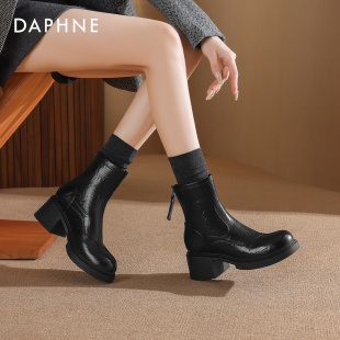 达芙妮女时尚 靴休闲短靴单靴 马丁靴年秋冬百搭保暖靴子加绒工装