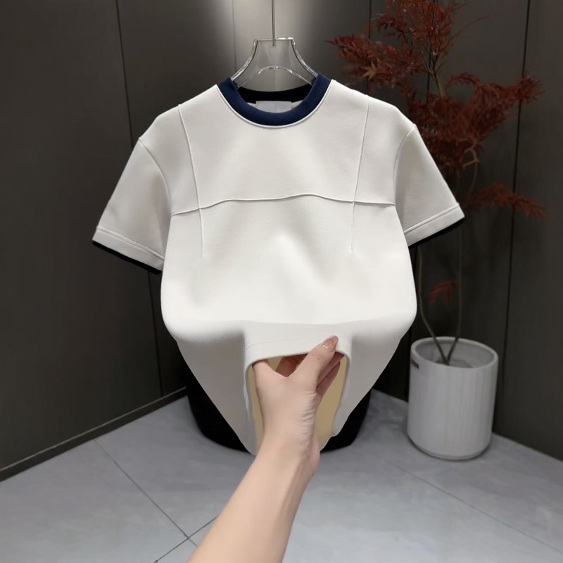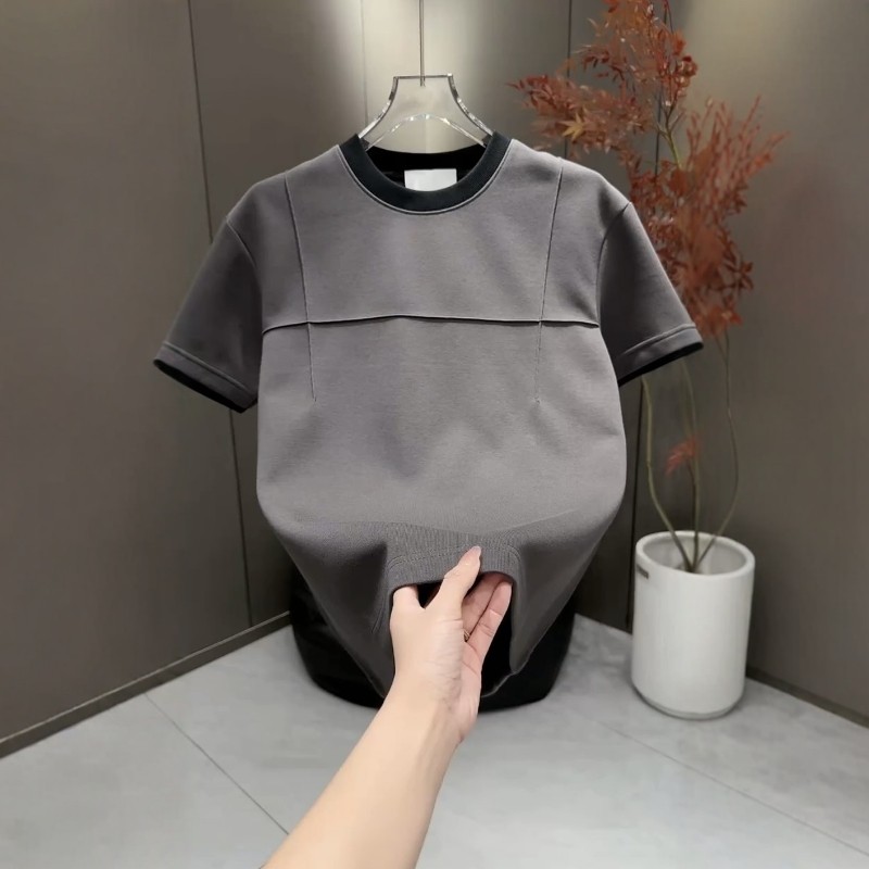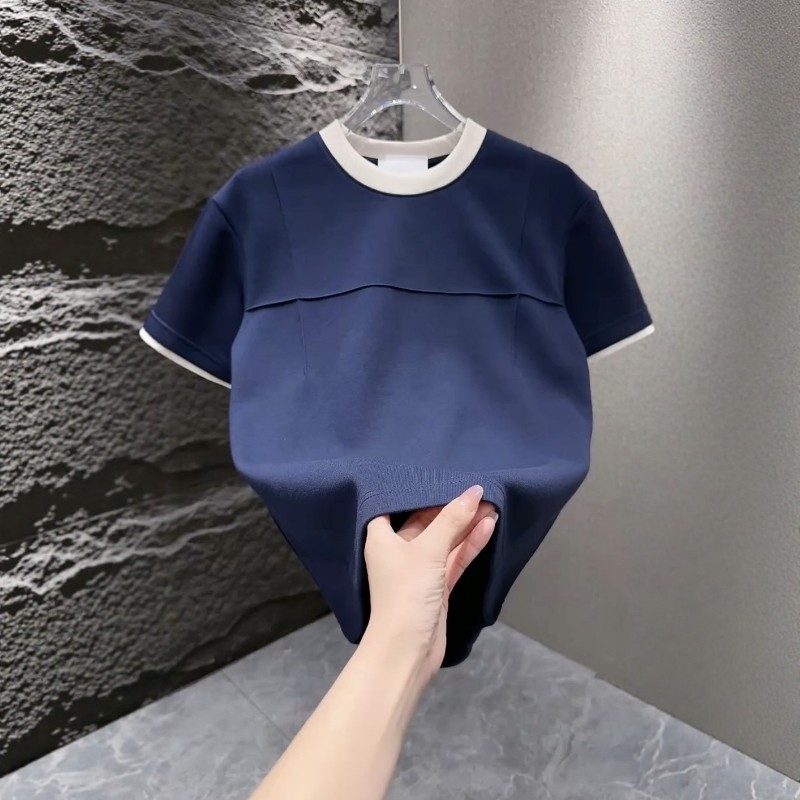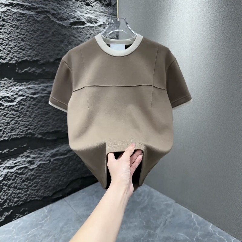 打底加厚短袖 套头半袖 建议质感潮流拼色圆领T恤男士 2025秋冬新款