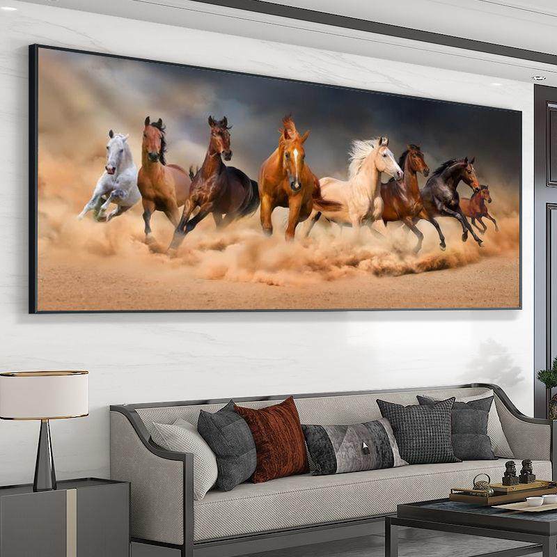 到马装 成挂功老板办公室画山水字641画客厅沙发墙饰八骏图国画新