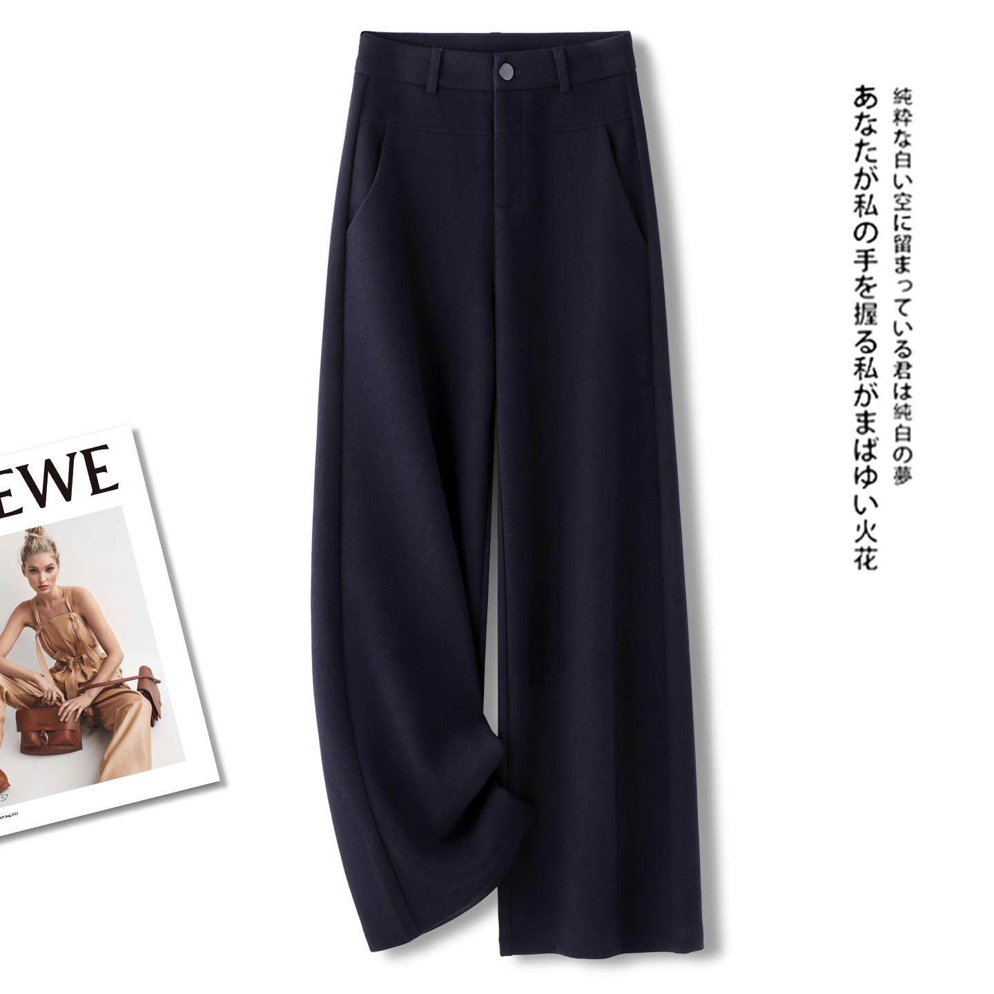女秋冬季 垂感直筒裤 2025新款 毛呢糯米裤 灰色羊绒爆款 高级感阔腿裤
