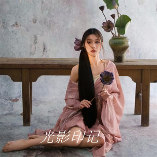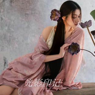 影楼新款 国风禅意印花连衣裙女高级感氛围感摄影服 新中式