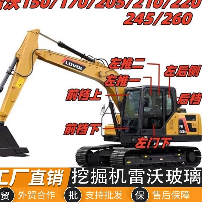 福田雷沃FR205 220E挖掘机挡风玻璃钢化玻璃前挡后档门下左推 210