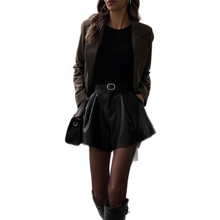 欧美优雅气质休闲百搭纯色皮革短裤 2025秋冬 女装