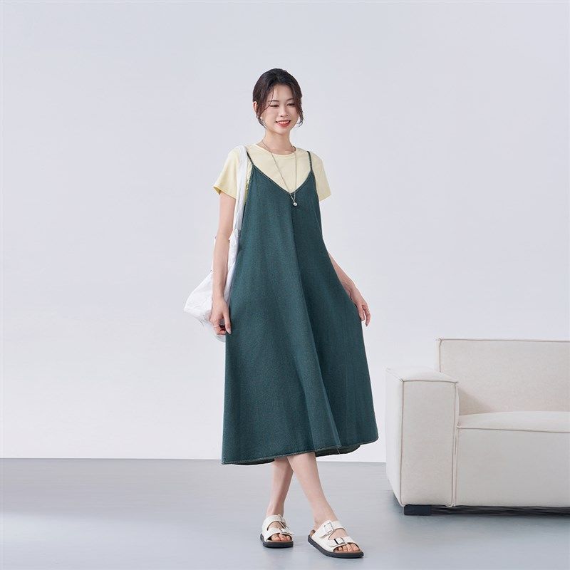 穿搭短袖 孕妇牛仔背带裙套装 孕期法式 2025新款 T恤吊带连衣裙 夏季