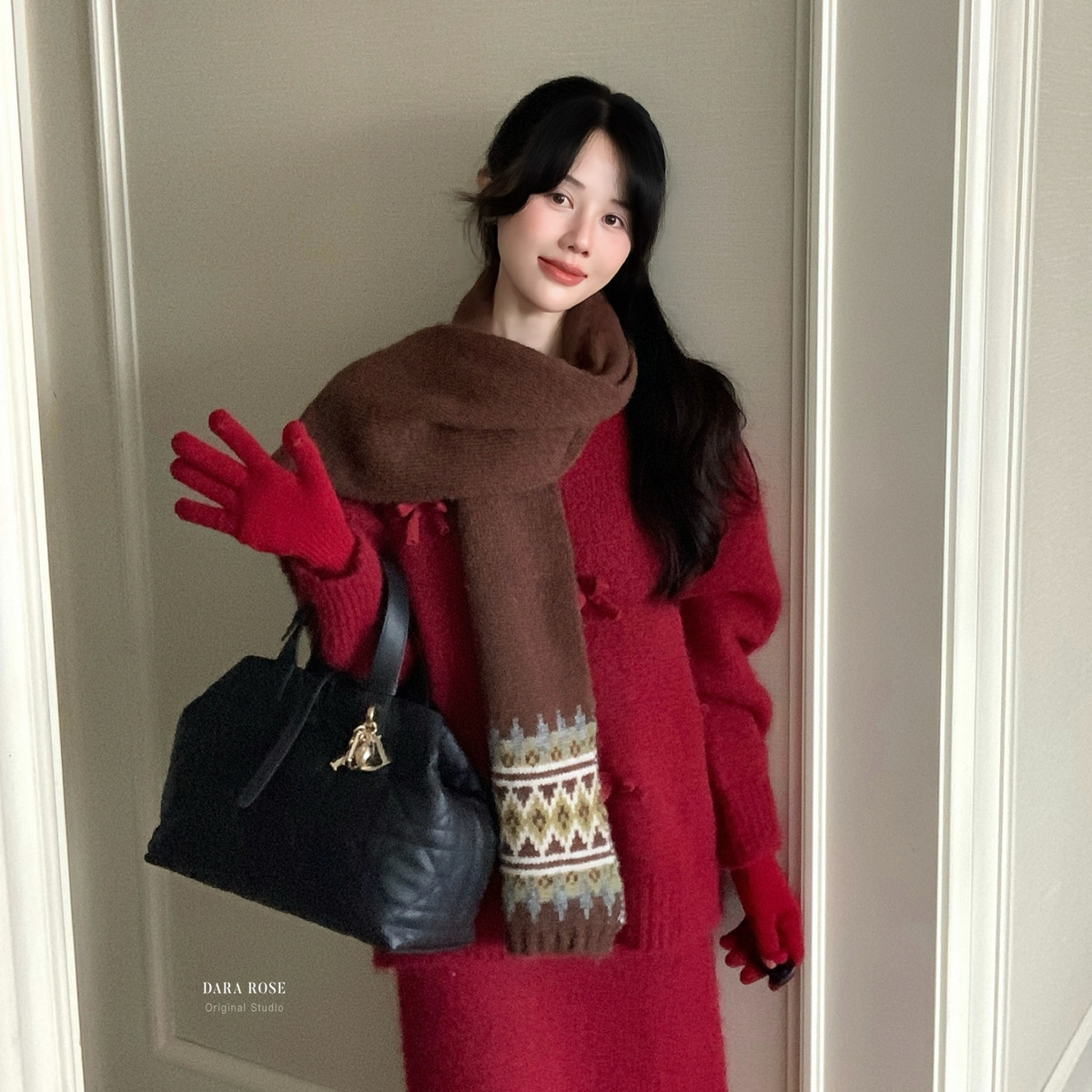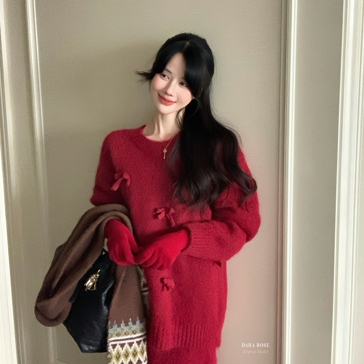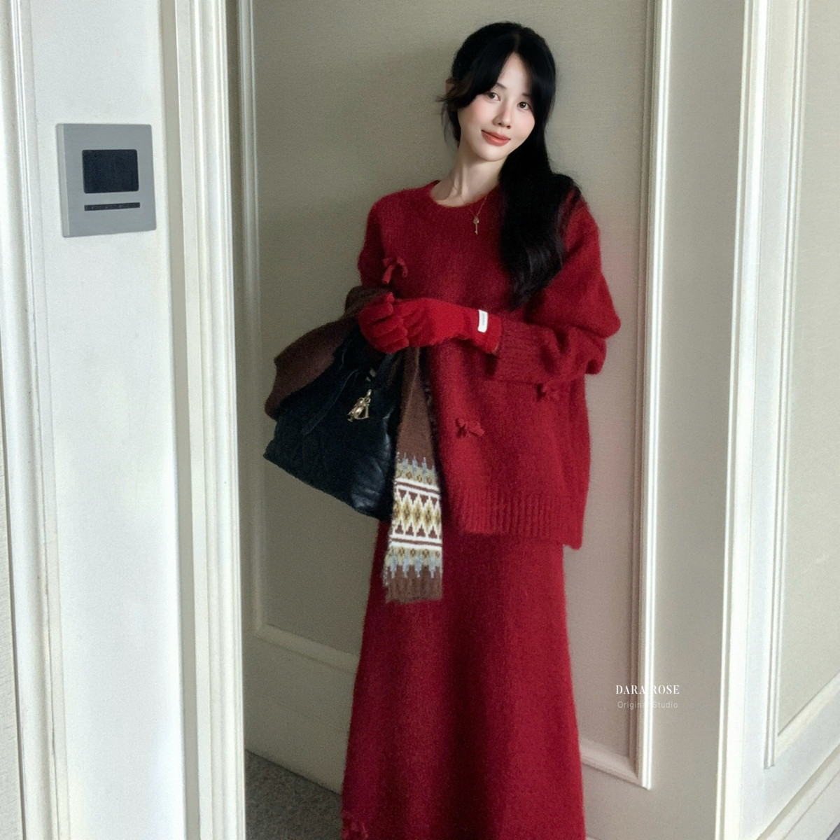 半身裙套装 DARA 毛衣 一整套红色洋气减龄套头宽松长袖 S8131 ROSE