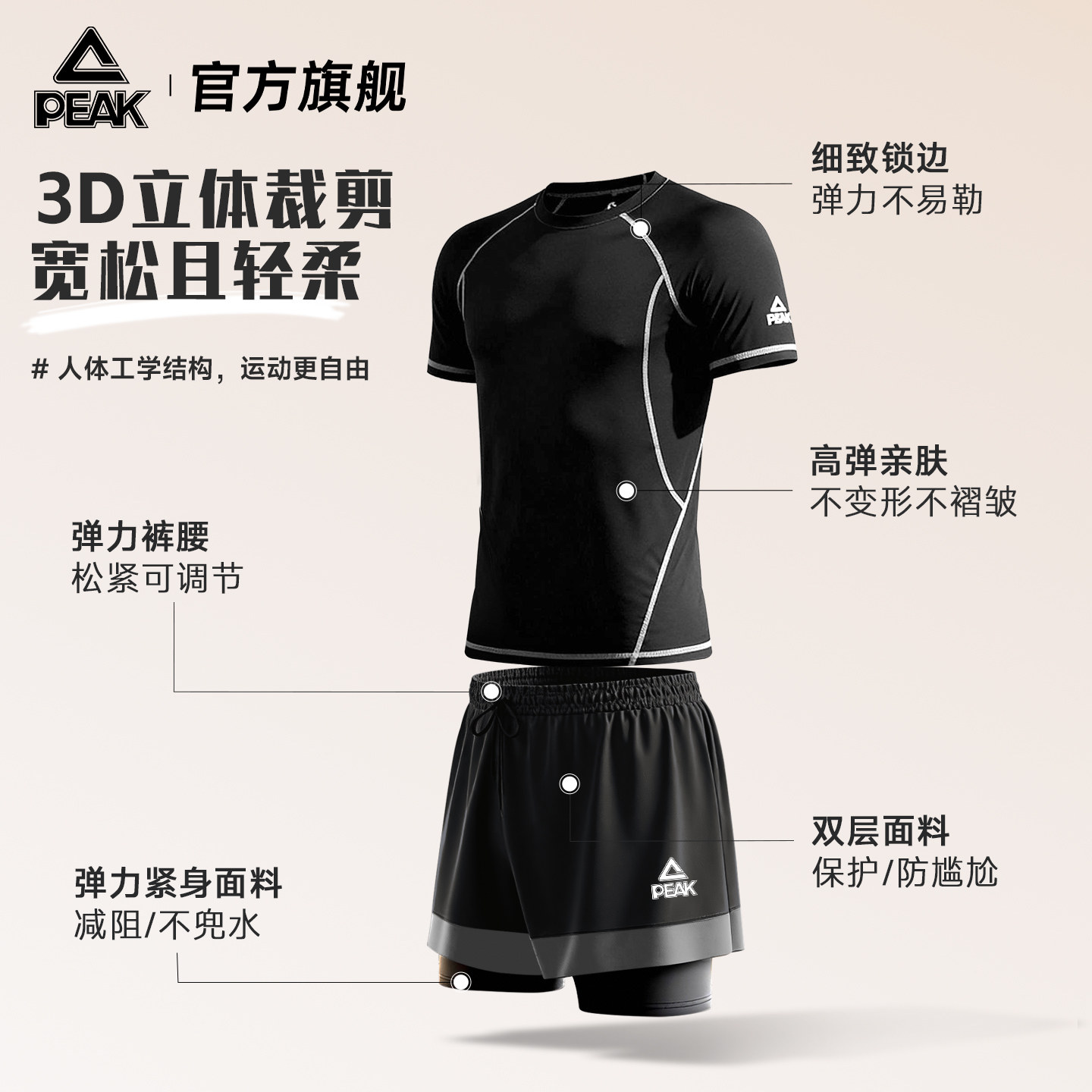 游泳泡温泉防尴尬速干2025新款 套装 分体成人上衣 泳衣泳裤 匹克男士