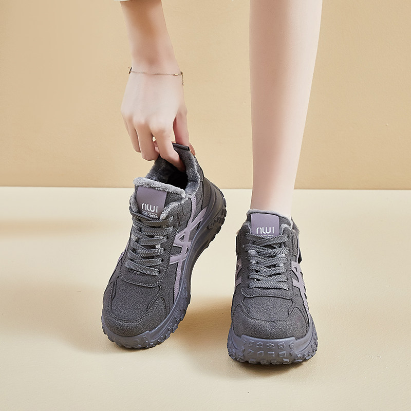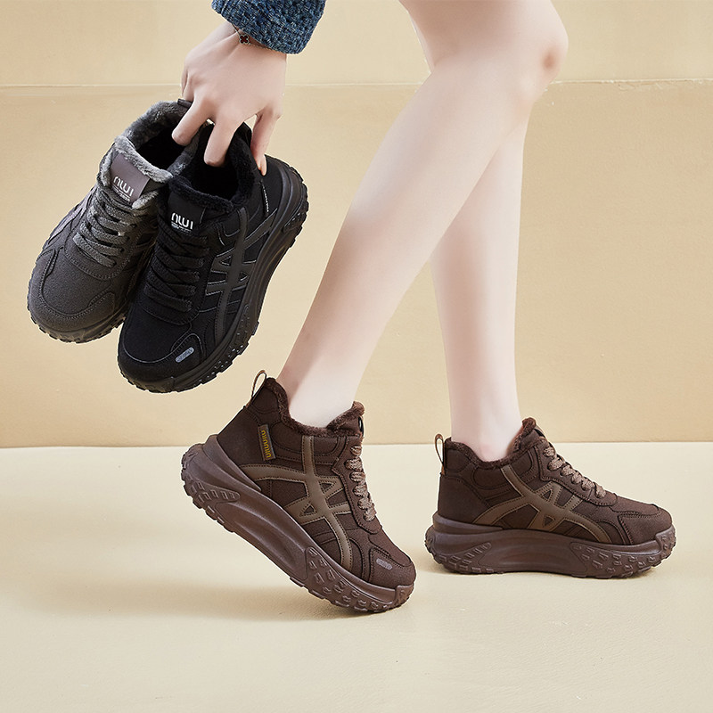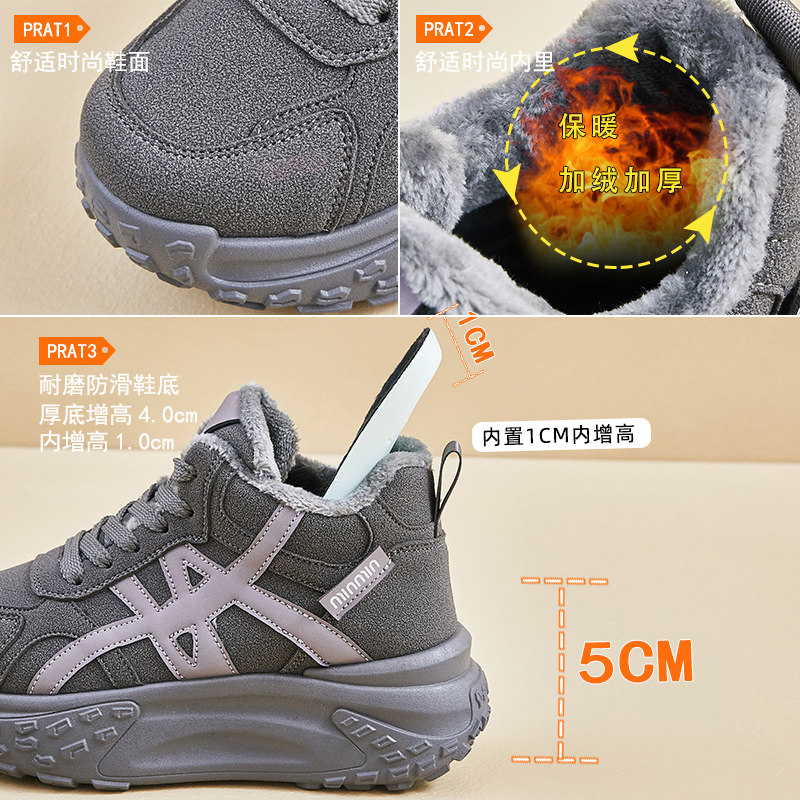 厚底增高防滑运动保暖百搭休闲鞋 北极海鹦踩屎感加绒老爹鞋 女冬季