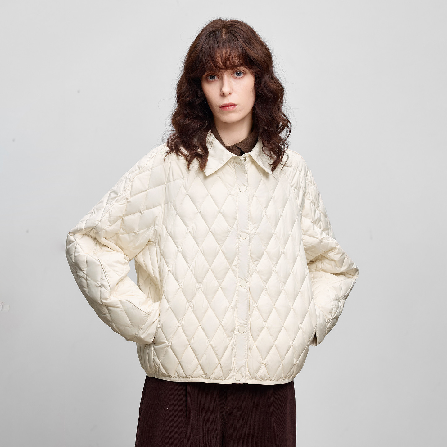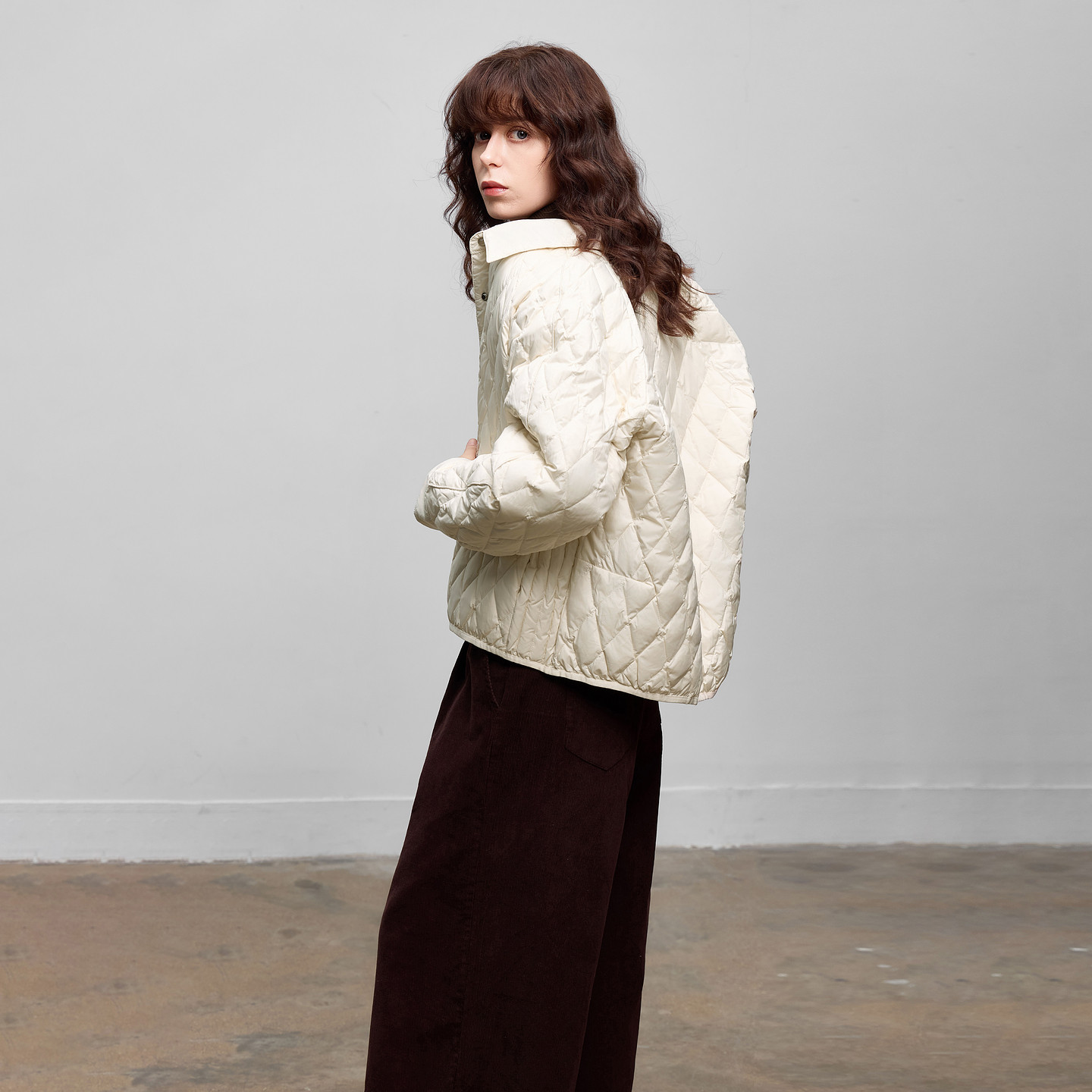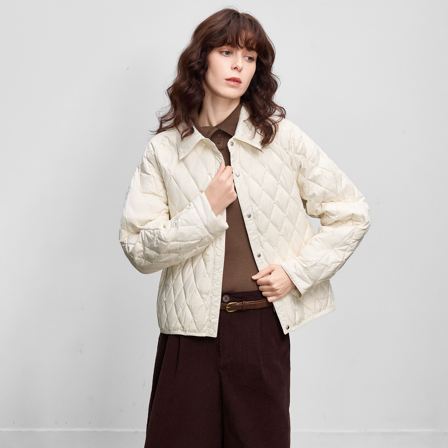 翻领保暖外套 轻量感短款 德玛纳轻奢90鸭绒菱格羽绒服女25冬季 新款