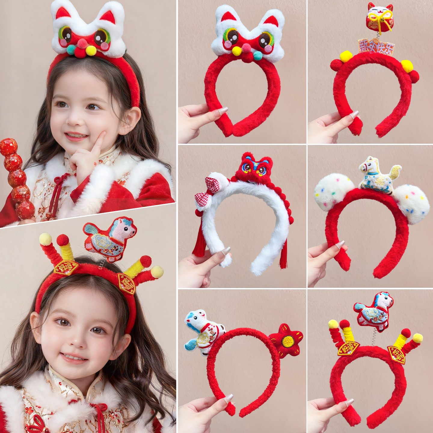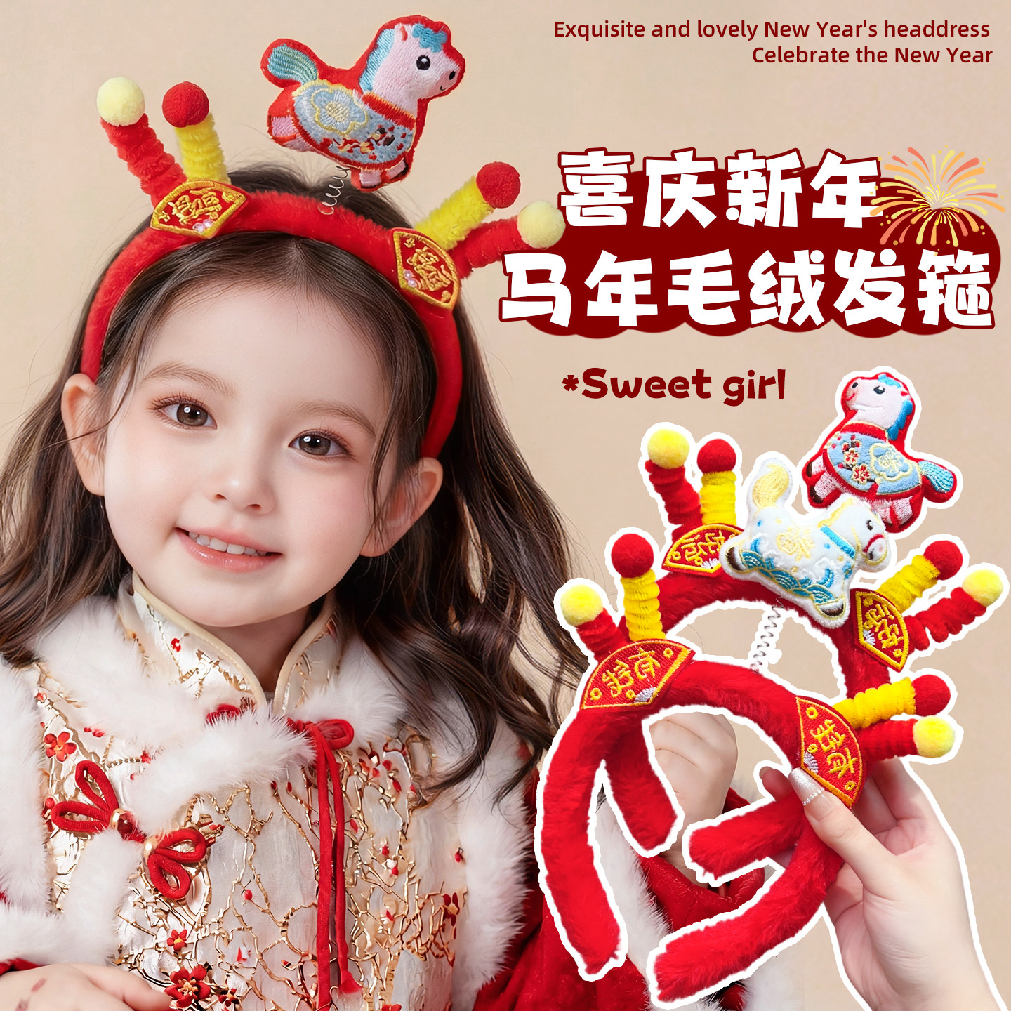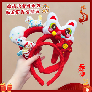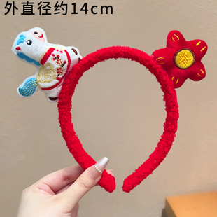 儿童新年小马花朵发箍过年喜庆拜年神器毛绒不压发头箍氛围感发饰