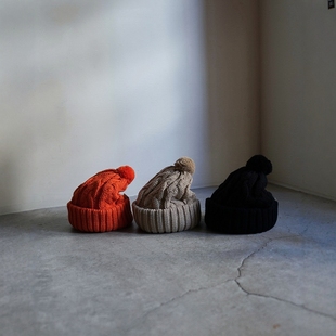 H.W.DOG&CO. 25AW BIG KNIT 狗牌羊毛混纺毛球针织冷帽 CABLE THE