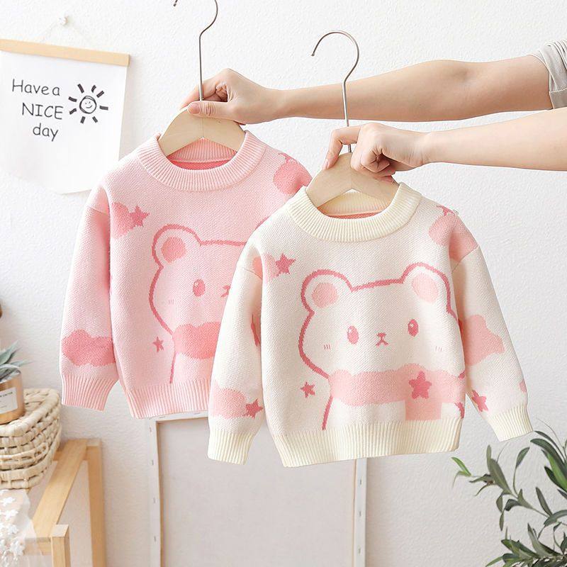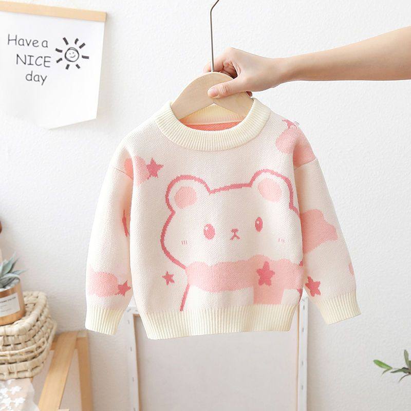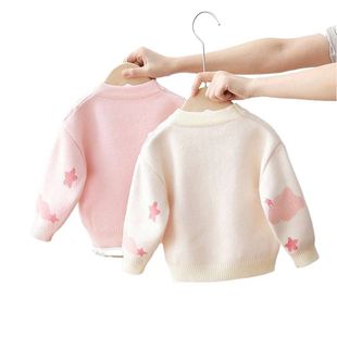 儿童针织衫 女童毛衣套头加绒加厚洋气小童2025新款 女宝宝内搭冬季