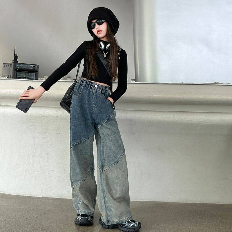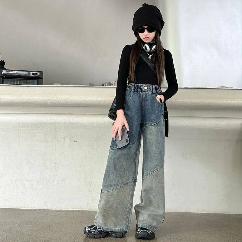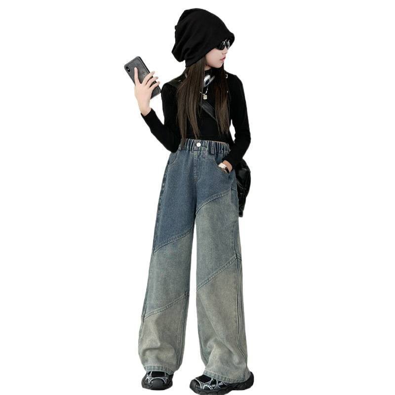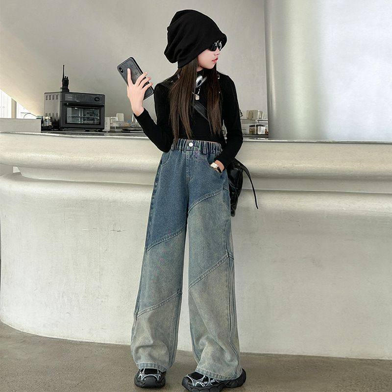 加绒宽松直筒阔腿裤 女童春秋牛仔裤 洋气冬装 中大儿童韩版 2025新款