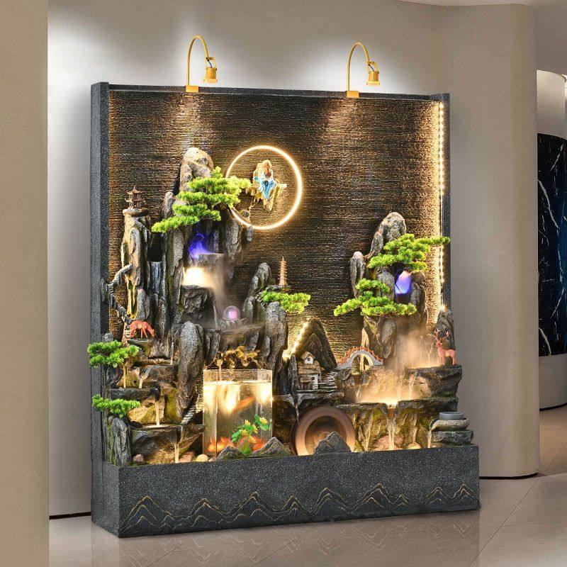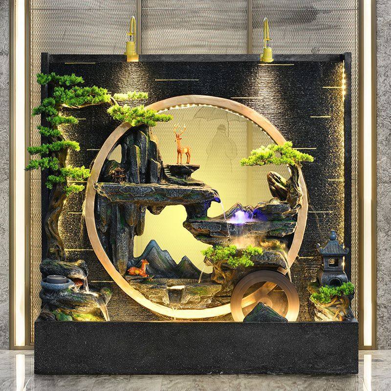 水幕墙流水景观屏风假山水循环喷泉水景客厅庭院鱼池瀑布造景摆件