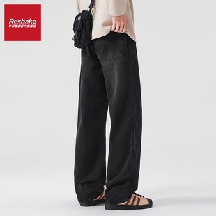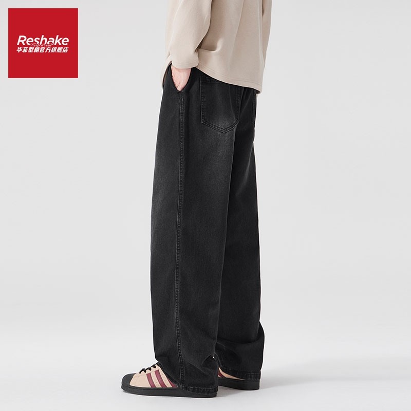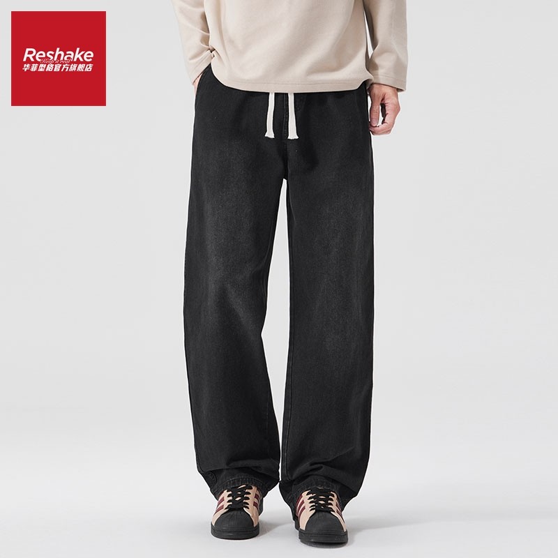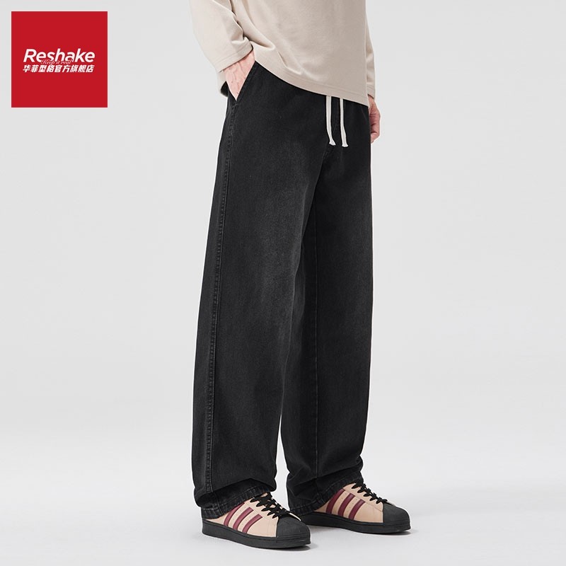 直筒宽松男生阔腿休闲裤 回力浅蓝加绒牛仔裤 2025新款 秋冬季 子 男士
