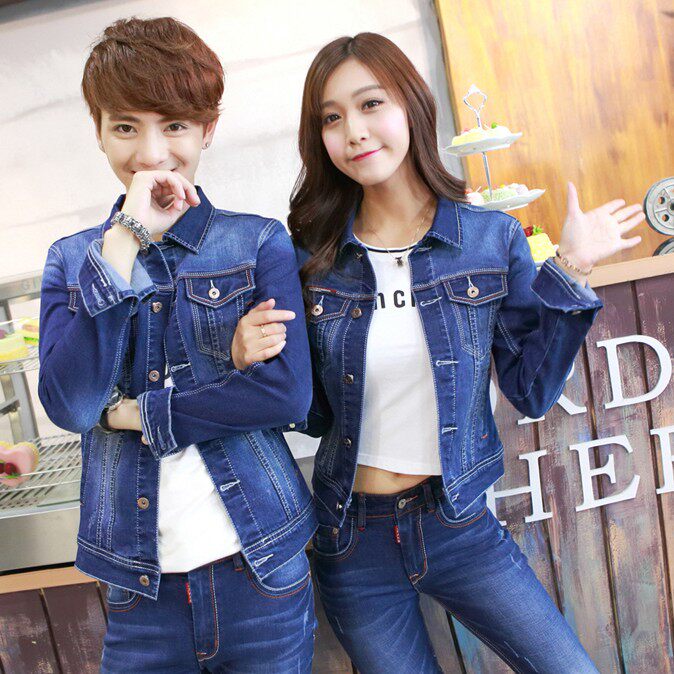 潮牌新款 复古学生夹克女上衣裤 潮流修帅气情侣套装 牛仔外套男韩版