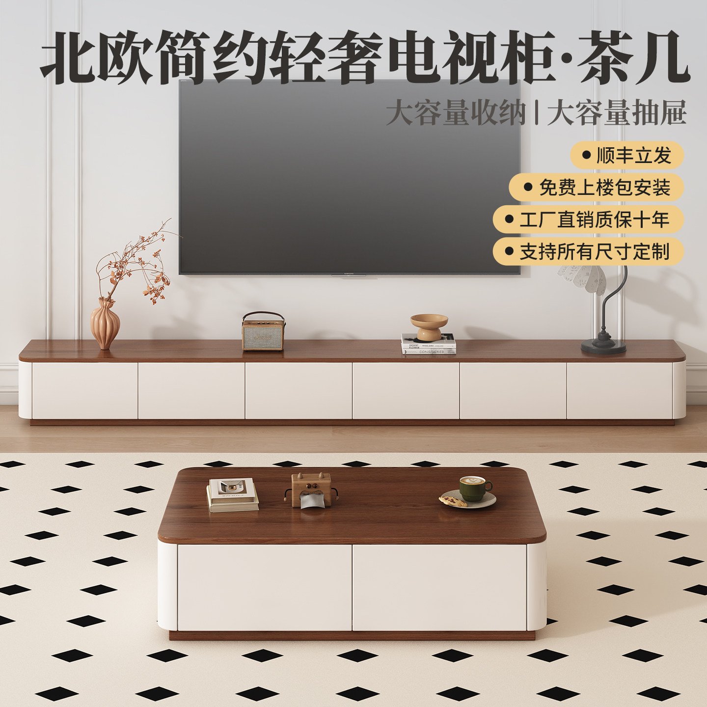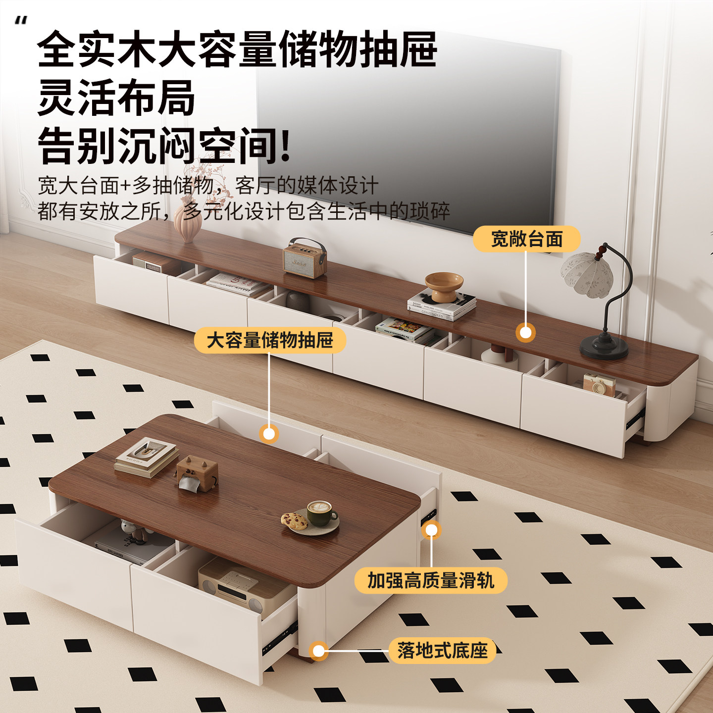 电视机柜2025新款 客厅家用茶几组合小户型收纳储物实木落地柜卧室