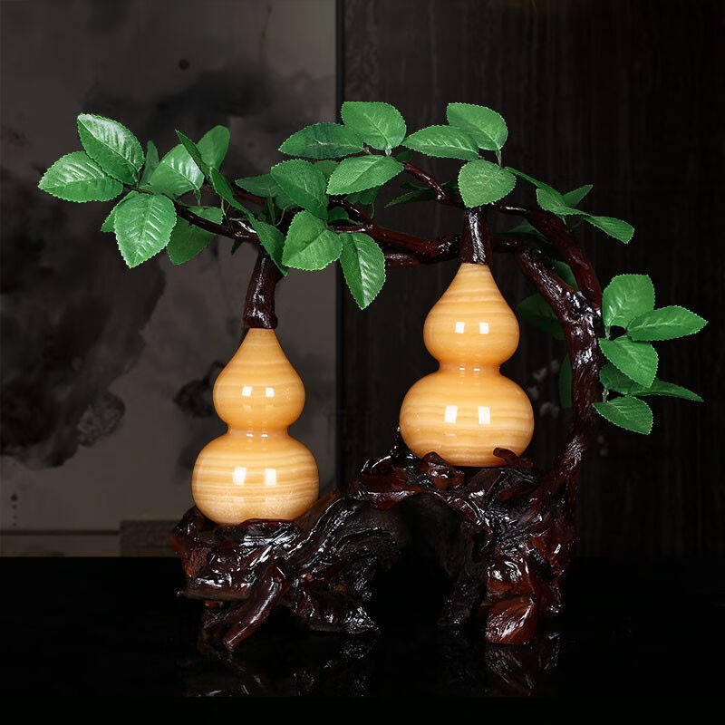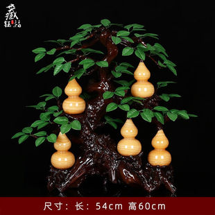黄水晶发财树招财猫入户玄关摆件家居装 饰办公室招财乔迁生日礼物