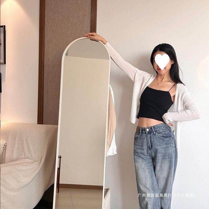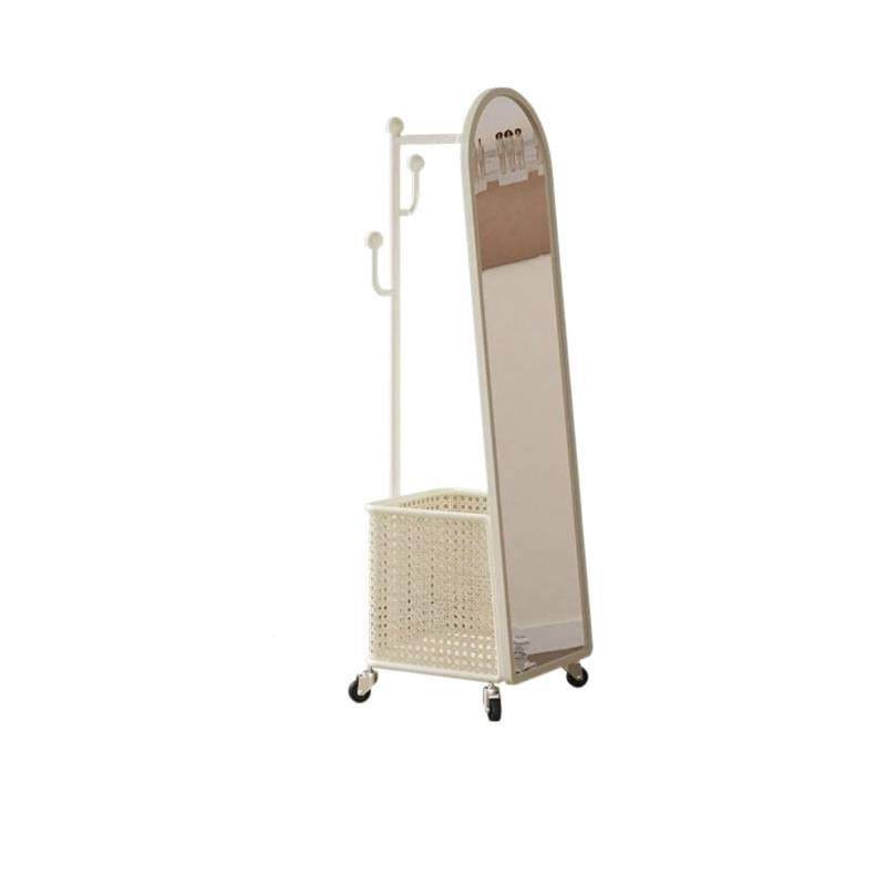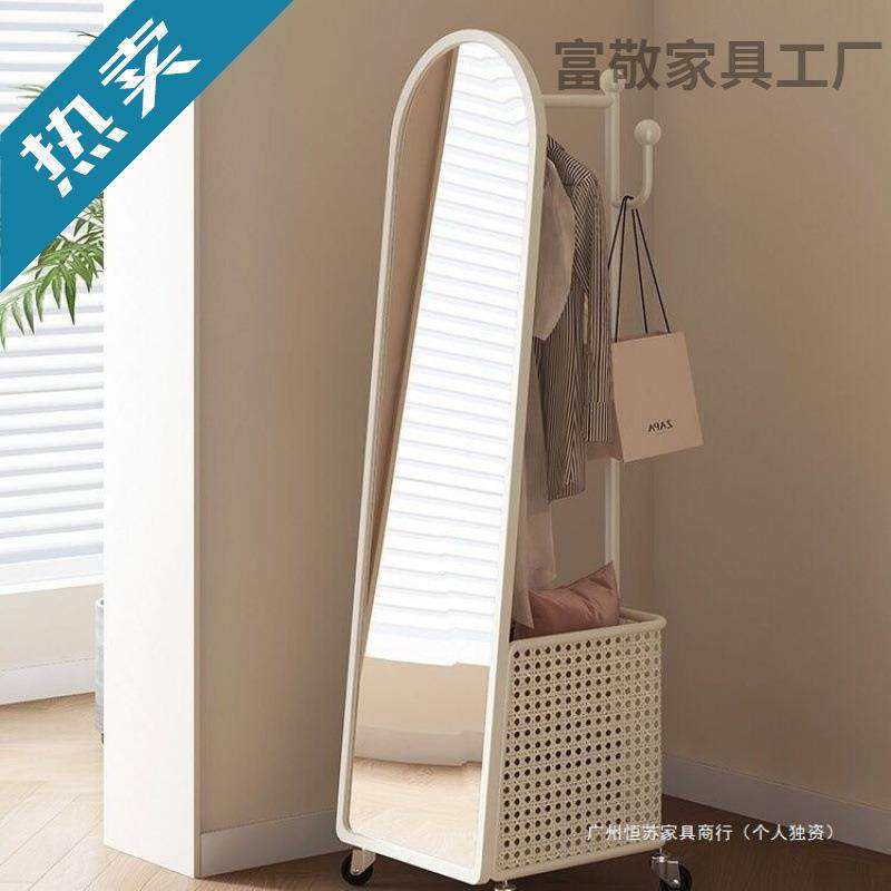 奶油风试全身旋镜转穿衣镜动衣镜移落地式 挂衣架落HSW地镜一体衣