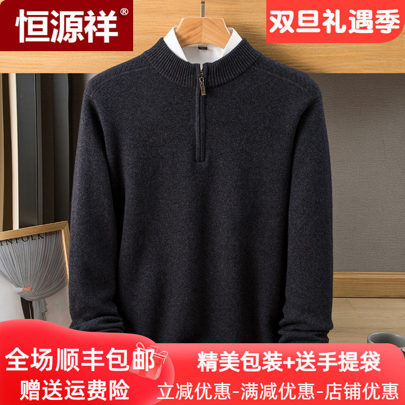 针织衫 纯色长袖 平圆方中半高领毛衣套头衫 男 羊绒羊毛打底薄款