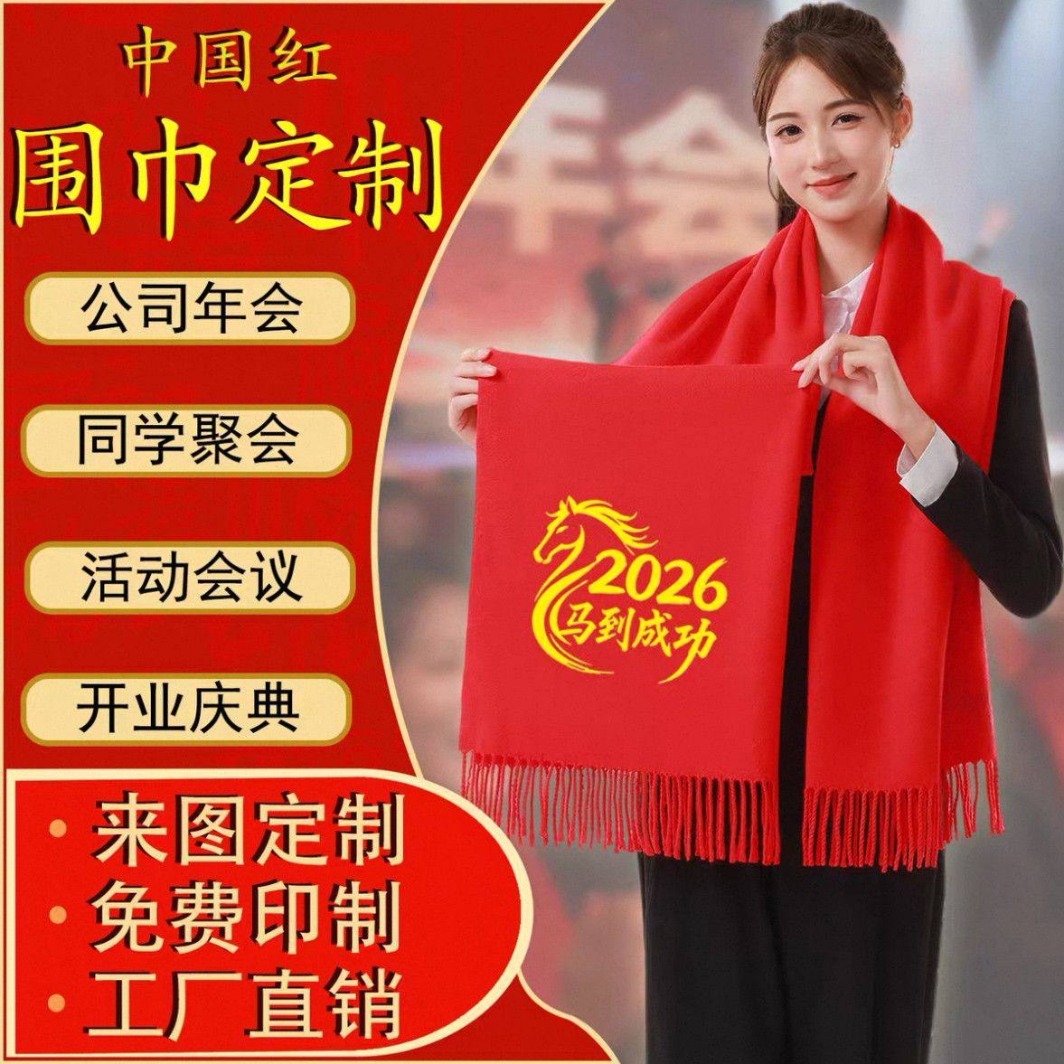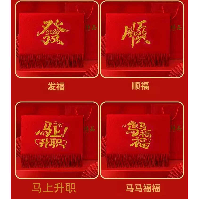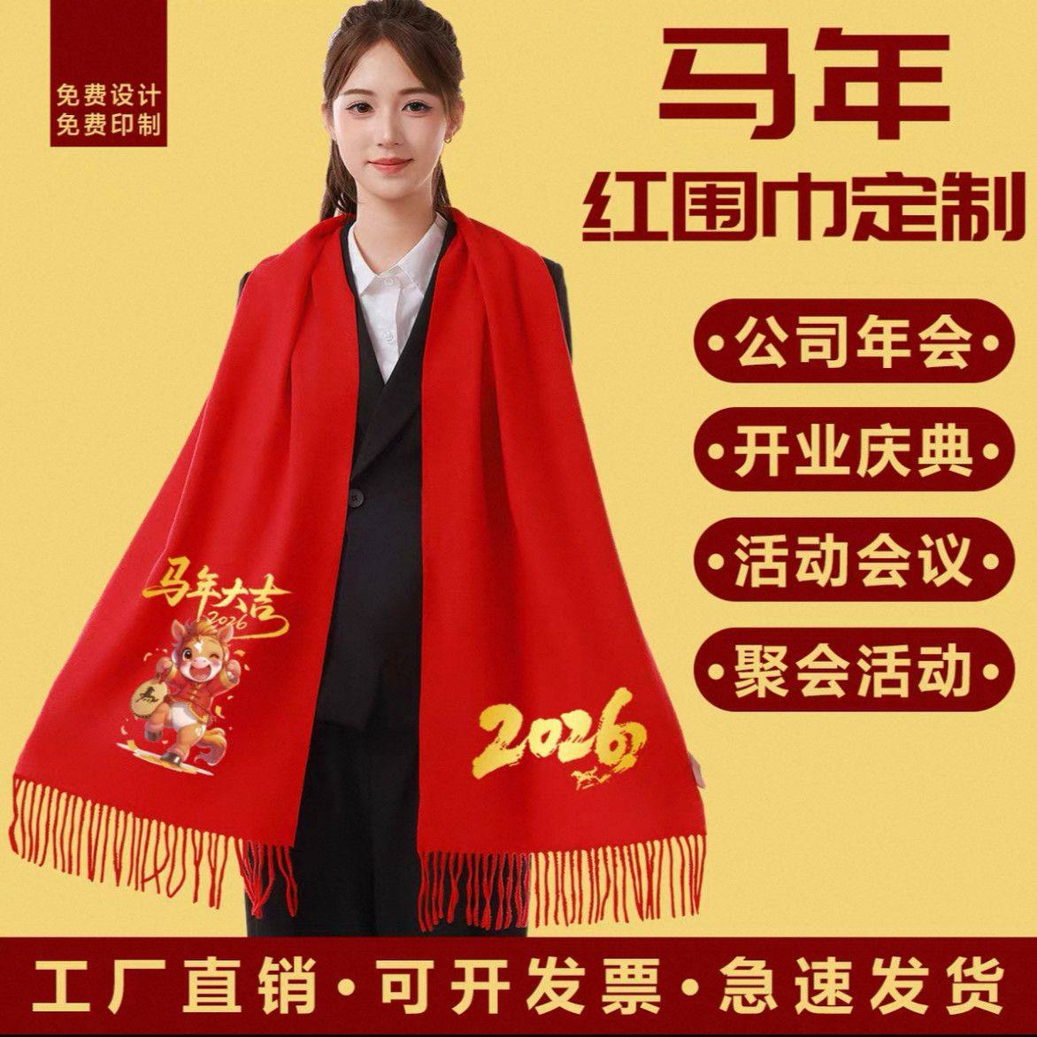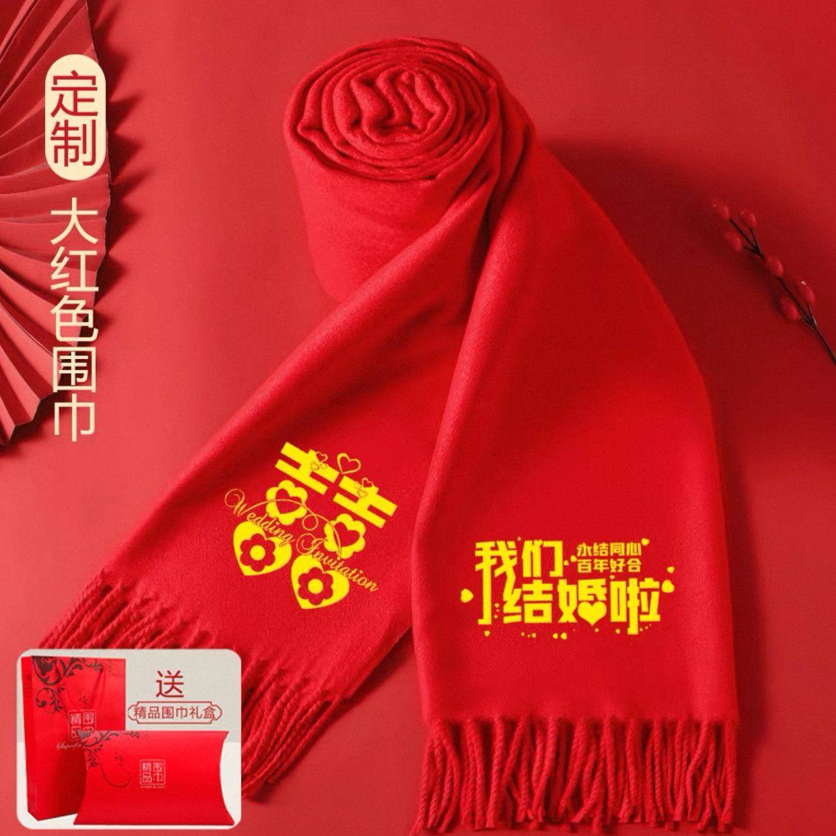 新春元 旦公司年会中国红围巾定制logo礼品开业宣传婚庆祝寿印字