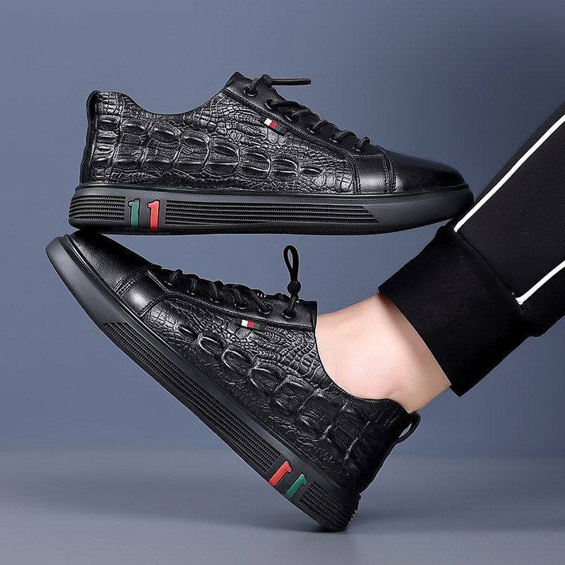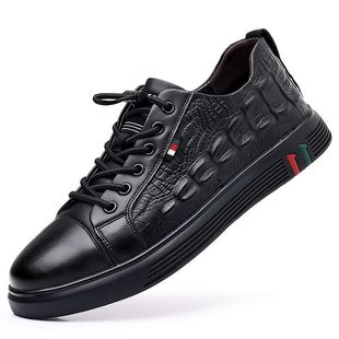 真皮潮流透气板鞋 2025新款 鳄鱼纹豆豆鞋 男款 男式 懒人皮鞋 休闲板鞋