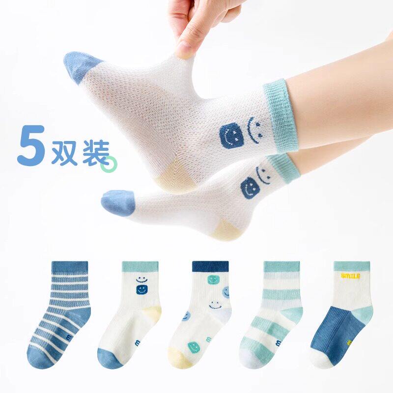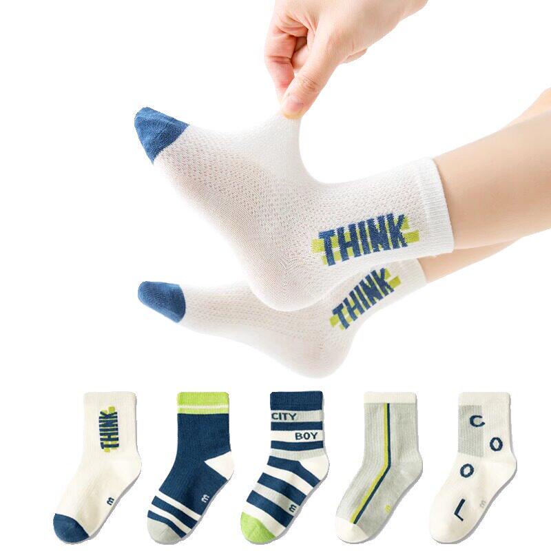 男童袜子秋季 网眼儿童护跟袜运动透气中大童男孩字母船袜HH 薄款