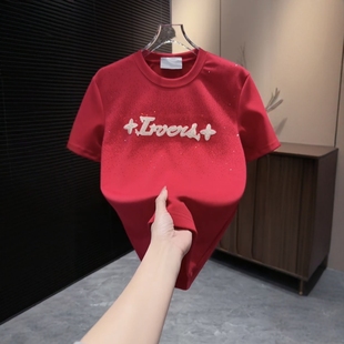 百搭休闲短袖 潮流纯色气质洋气字母圆领T恤男士 时尚 2025秋冬新款