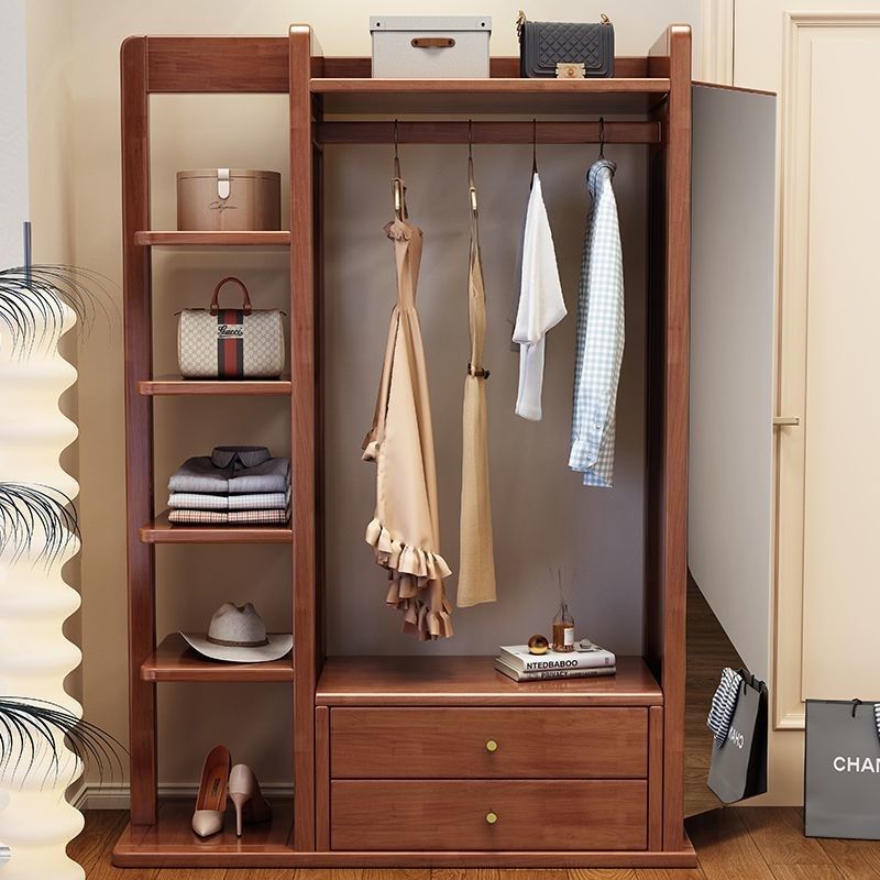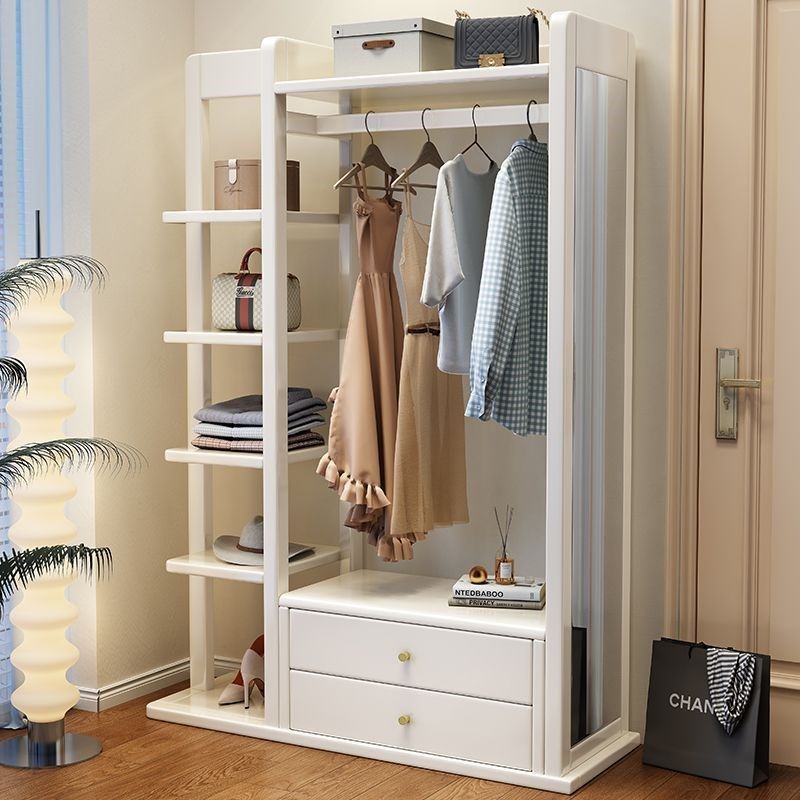 实木衣帽架落地卧室简易挂衣架穿衣镜一体简约家用多功能置物架子