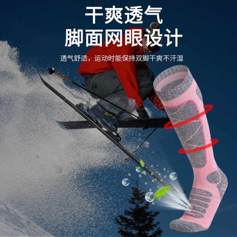 滑雪袜女男保暖高长筒专业运动针织毛线袜户外加厚毛巾底成人长袜