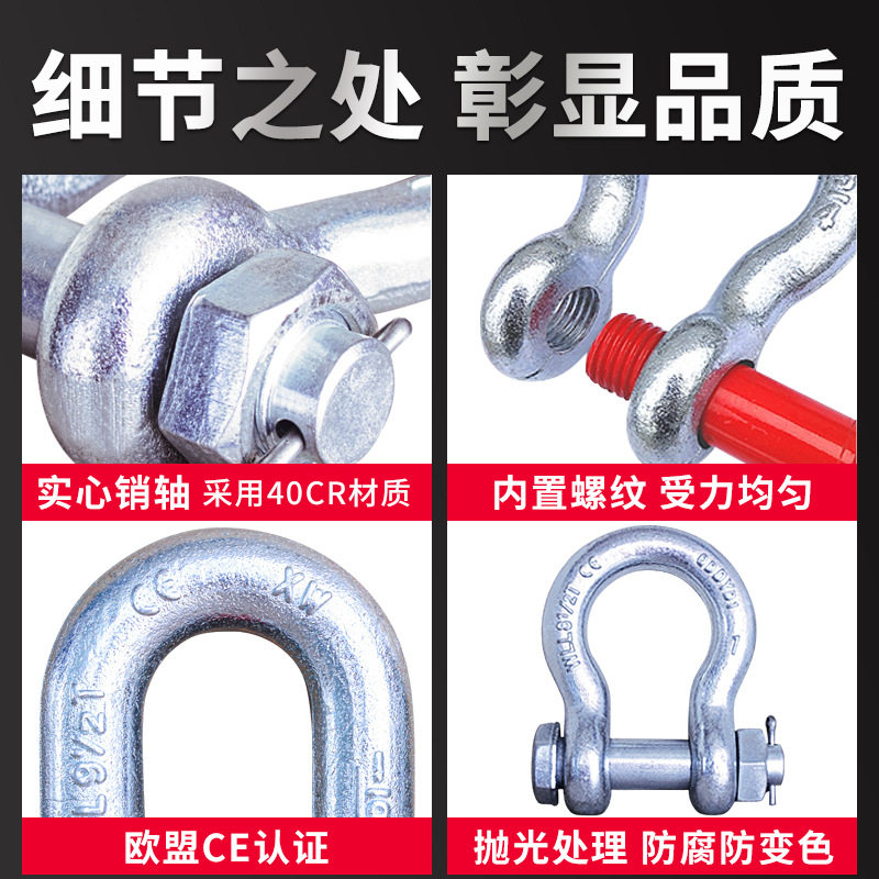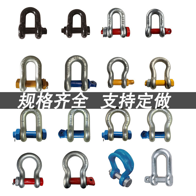 D型螺栓卸扣m1217t55t100吨船用美式 u型弓形螺母吊耳马蹄起重卸扣