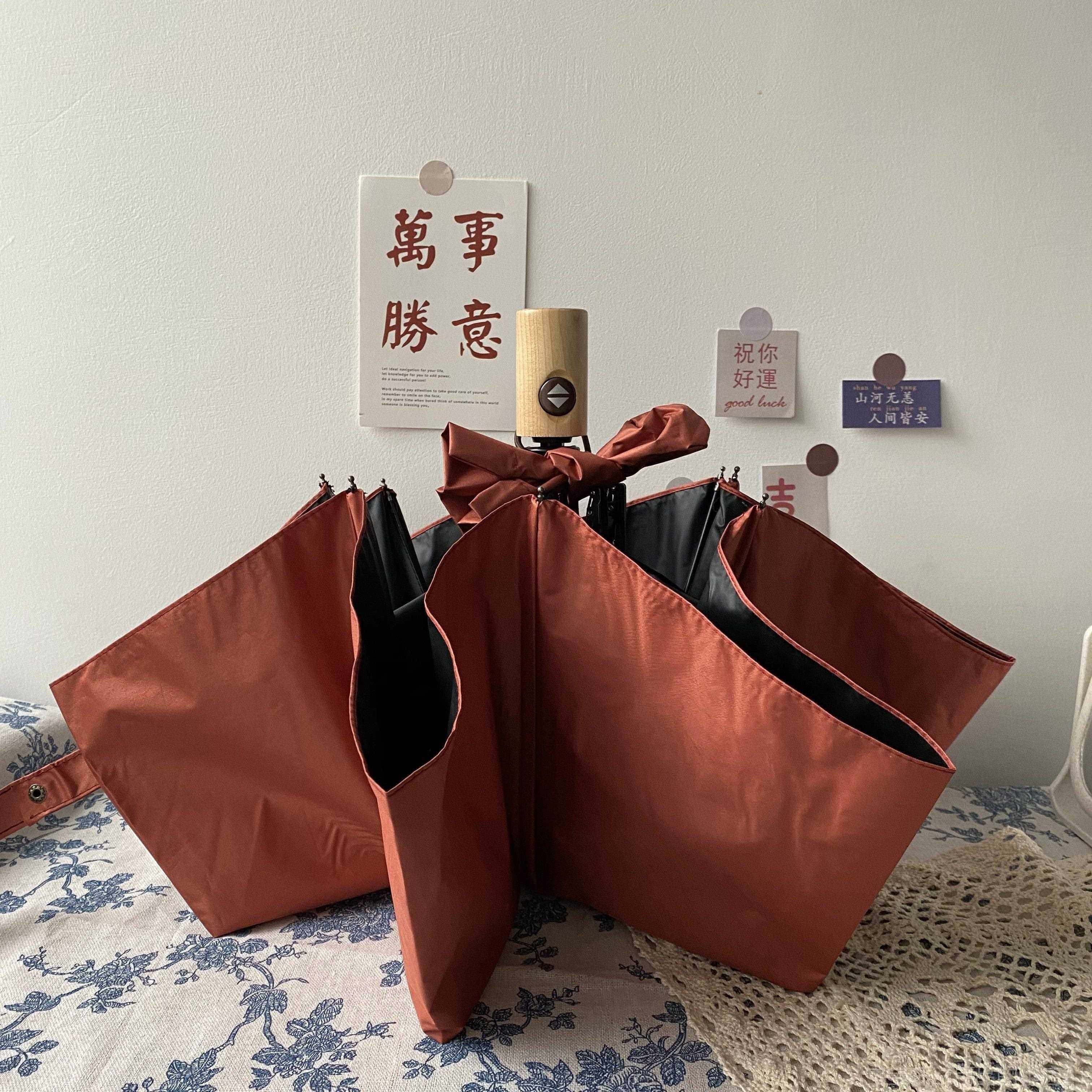 高档ms系ho幻象 重度灰香芋紫素色i遮ns自动三折晴雨用阳黑胶雨伞