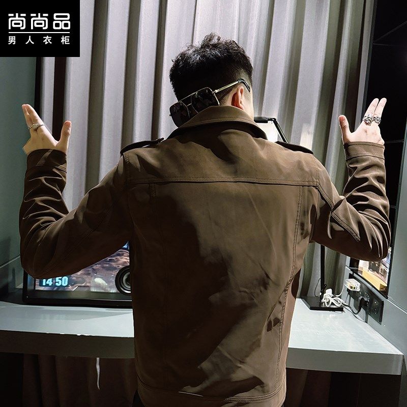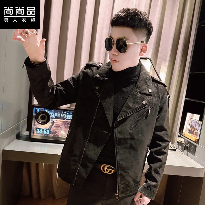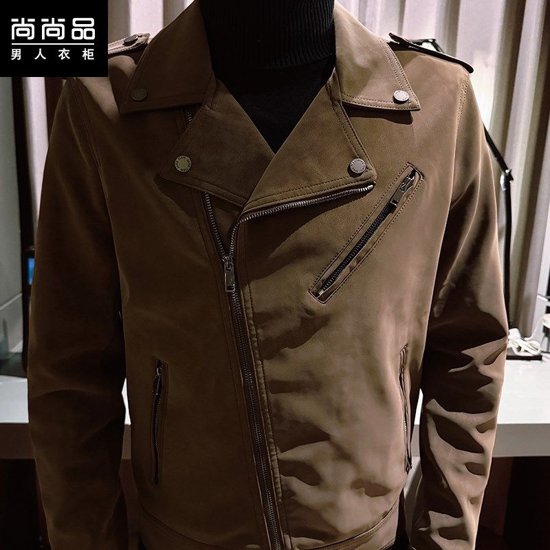 潮流翻领机车夹克潮牌修身 韩版 斜拉链复古皮衣 男士 2025春秋新款
