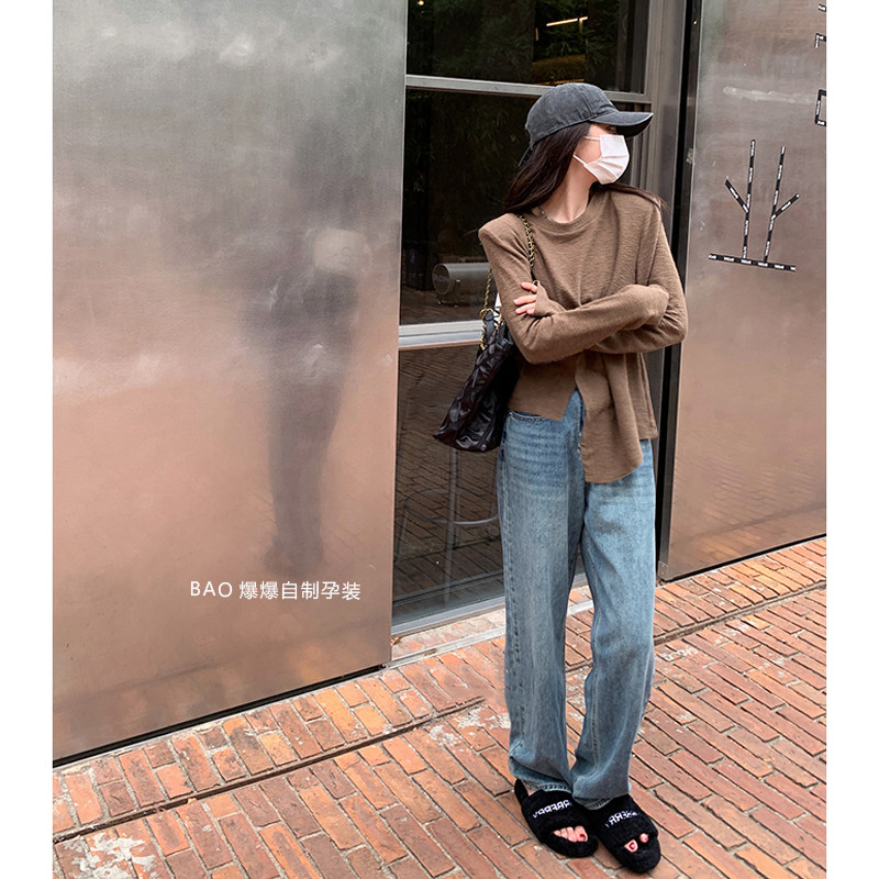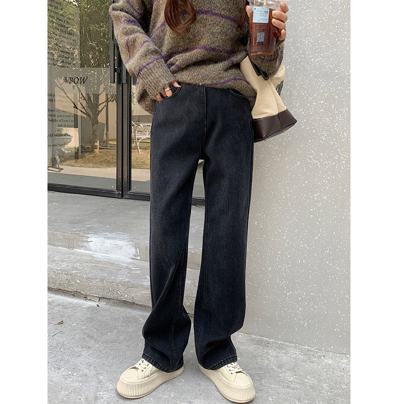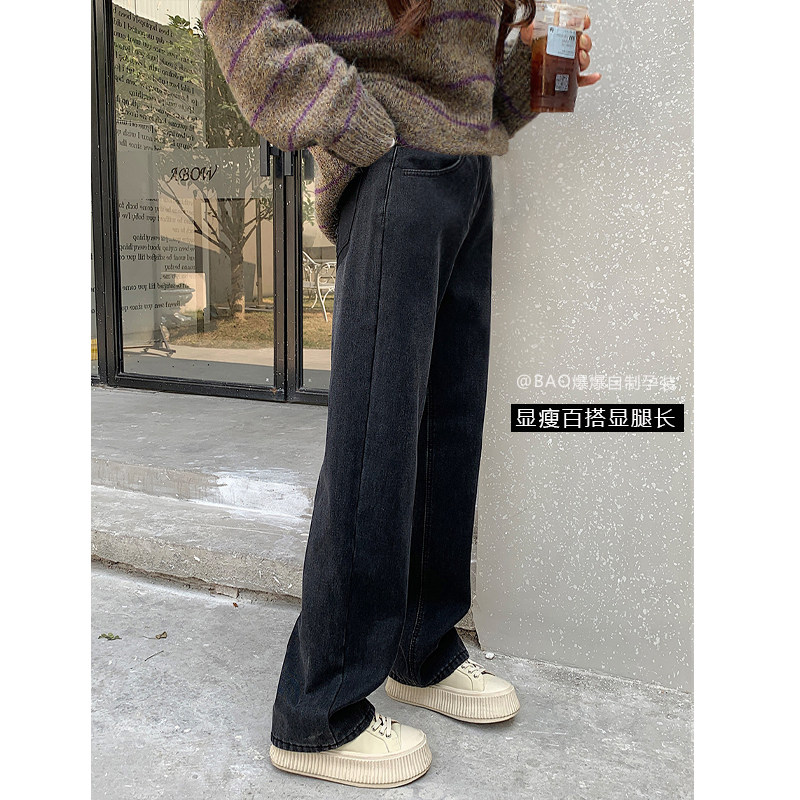 百搭拖地裤 孕妇牛仔裤 黑灰外穿直筒阔腿长裤 加绒加厚款 子春秋冬季